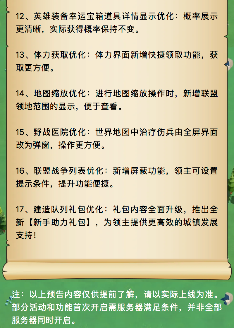亲爱的领主:我们即将在2025年11月24日进行版本更新,届时您可能会出现2-3分钟的断线,您可以尝试重新连接。以下是本次更新的详细内容。