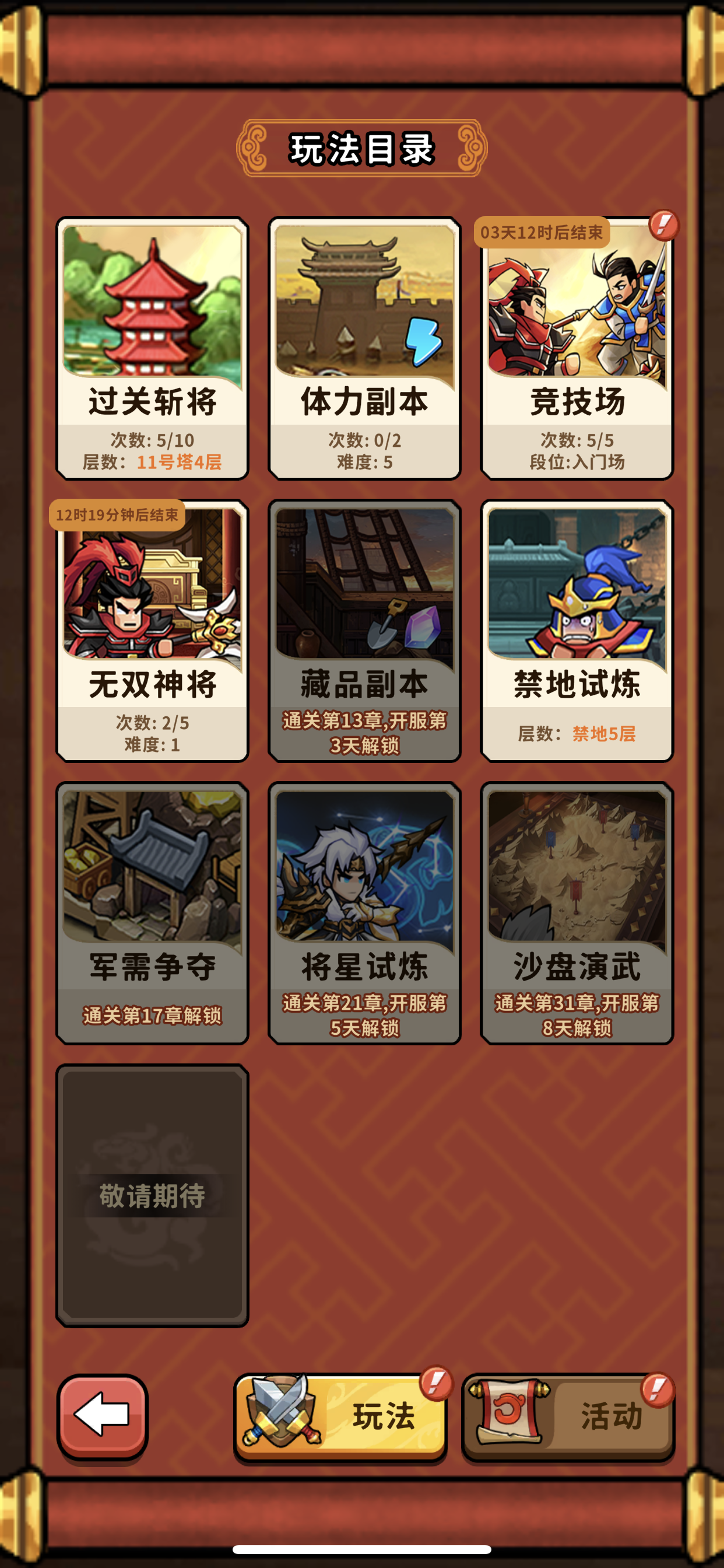 新手期就是干主线任务跟着活动走,抽装备装备抽满选招募令这样一个活动能当两次活动玩活动结束前几天就能出一匹马 ,选白马第一回合有压制眩晕和200%伤害 别选武将加成10%的马 前期打主线剧情和活动不好打 剩下的就是合装备抽传说招募和挖宝活动跟着走就好了,留元宝买黑市的材料看个人存储能力元宝 升级马的草料也留着4500就差不多一活动了