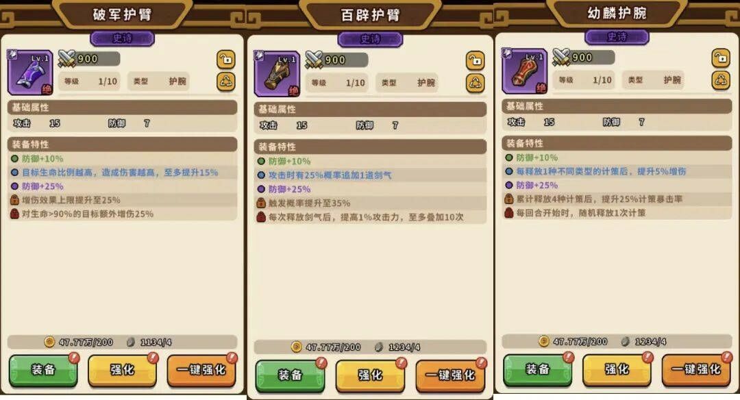 各位主公,征战沙场离不开神兵利器助阵!大家在面对琳琅满目的刀枪剑戟时是否挑花了眼?今天就由小编带领各位主公拆解装备系统,助您战力飙升!在群雄逐鹿中快人一步横扫千军! [武器系统] 一、基础属性(增益类型固定,随装备等级和品质的提升而提升) 武器:攻击,伤害效果 头盔:生命,防御 衣服:生命 饰物:攻击,防御。 二、装备特性 每件不同的装备都有独特的装备特性加成,在提升装备的品质的同时