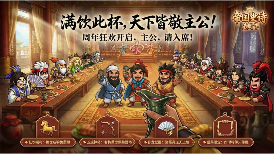 【周年庆典】登录必得破万元宝及25连抽!卧龙觉醒,黄忠登场! 我们一周年啦,感恩一载相伴,周年专属福利庆典现已全面开启!此时入局,正是狂揽福利、建立霸业的绝佳时机!#一周年 #发现好游戏 #帝国史诗