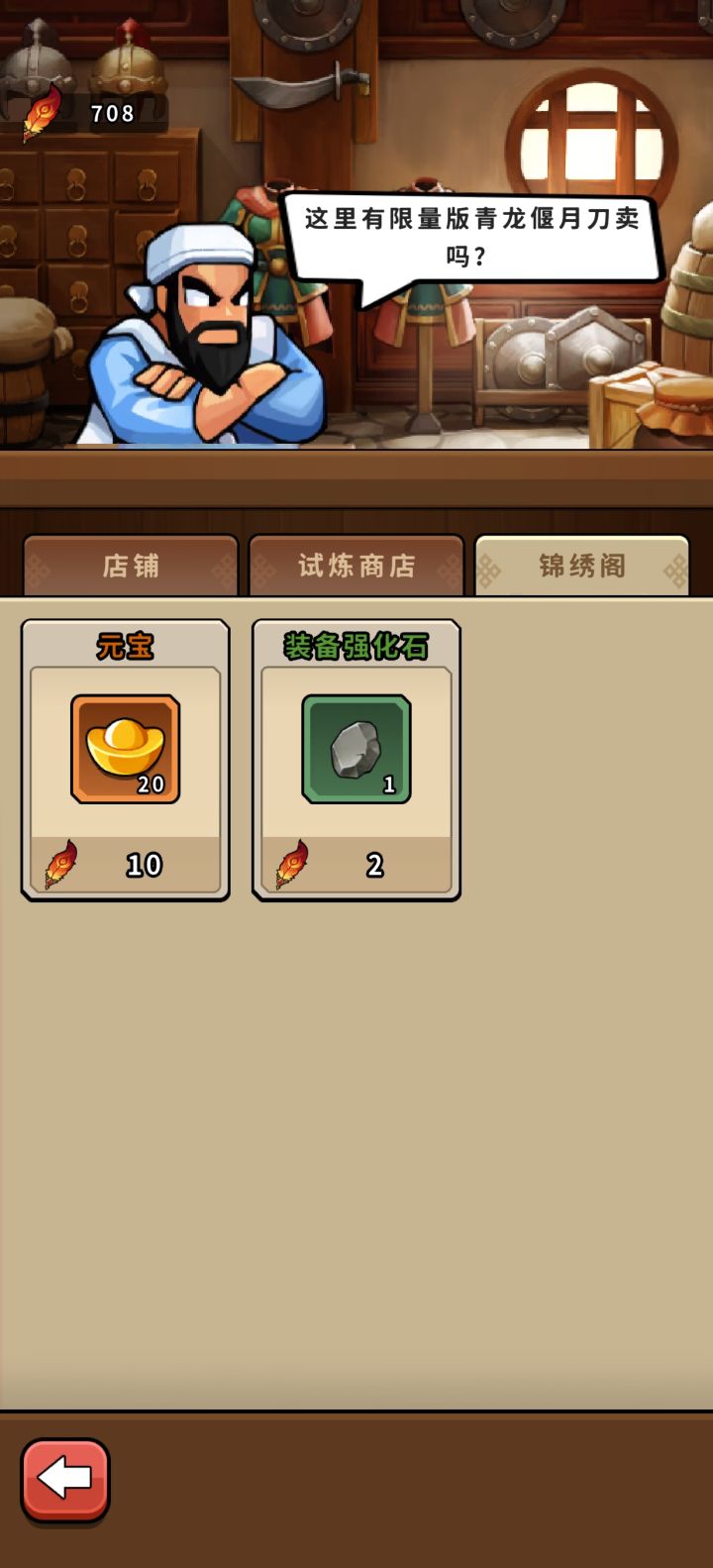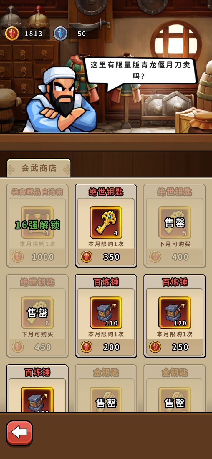 说在前面:作为竖屏摸鱼副游 主要看双卡或者三卡是否丝滑 本人一个月玩家 月卡到期没有氪了 感觉还行 战力方面 感觉顶多越5%战力pvp 再高了就打不过了 闯关很有特色 跟运气有一定关系 可以越战力闯关 下面开始说攻略:1.这游戏得存资源 特别是粮草和百炼锤 每次活动必须要存5000 可以拿满奖励(很丰厚) 然后就是洛阳铲和英雄令 必须100以上 以100为单位 最多500个(奖励拿满) 多了就存