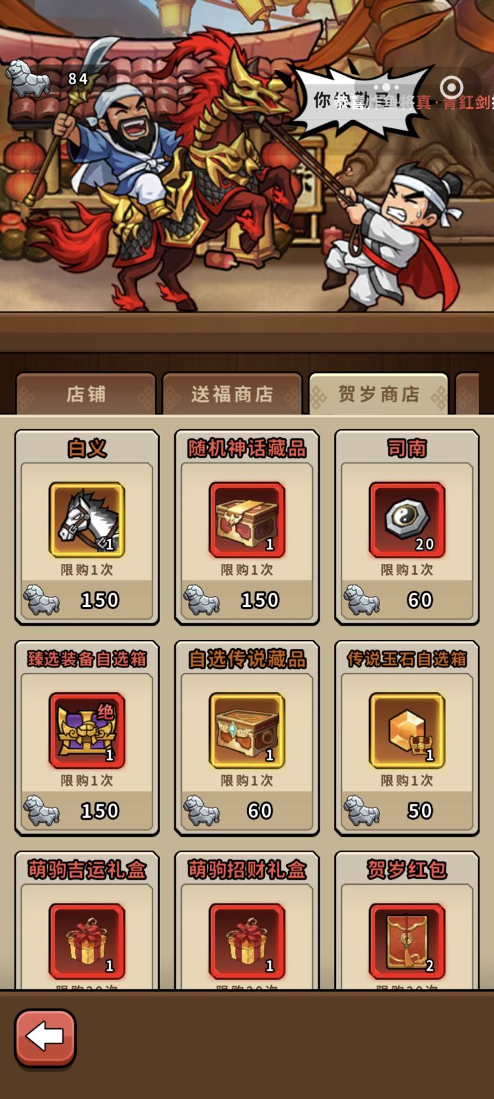 新春将至,金马踏春而来。名驹现世、五虎再临、觉醒开启,新一轮贺岁盛典即将开启!这个春节,《帝国史诗》为主公准备了海量活动马超登场、赵云觉醒、新春战令、签到福利、海量元宝...新年新气象,霸业再升级!(文章内容仅供参考,以游戏内容为准)金马送福盛典开启【春节活动日历】超多福利,待主公上线领取!【活动预告】一、金马送福利 · 名驹免费领①活动时间2月12日10点 ~ 3月3日维护