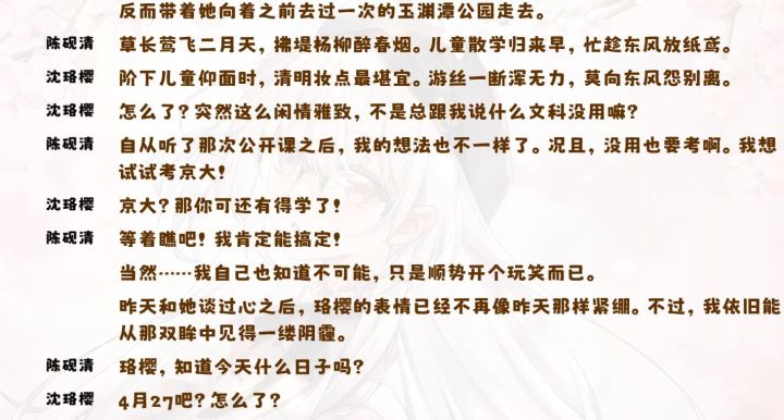 《未完信笺:纸鸢》3.0纪念周边企划开启! 周边预购链接: 《未完信笺:纸鸢》是一部以青春记忆为线的互动叙事游戏。 青梅竹马陈砚清与沈珞樱从高中重逢再到异地分离,两人共同书写着心动与迷茫的故事。 当相恋的两人相隔千里,他们还是否能拽紧“纸鸢”的线,借风而行? 3.0周边时间计划 本期周边包含 ①游戏3.0纪念光栅卡、光栅钥匙扣、光栅冰箱贴 ②未完信笺纸鸢日历 ③插画大赛同人纪念周边 ④沈珞樱冬装款