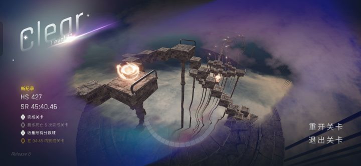场景空间很大,其中存在一些可探索的区域,在关卡目标处可以看到具体要求,而且还有时间限制。只到达终点完成关卡算是最低难度,三星是需要挑战的,通关的过程中需达成所有条件,且随关卡难度提升而愈发困难。