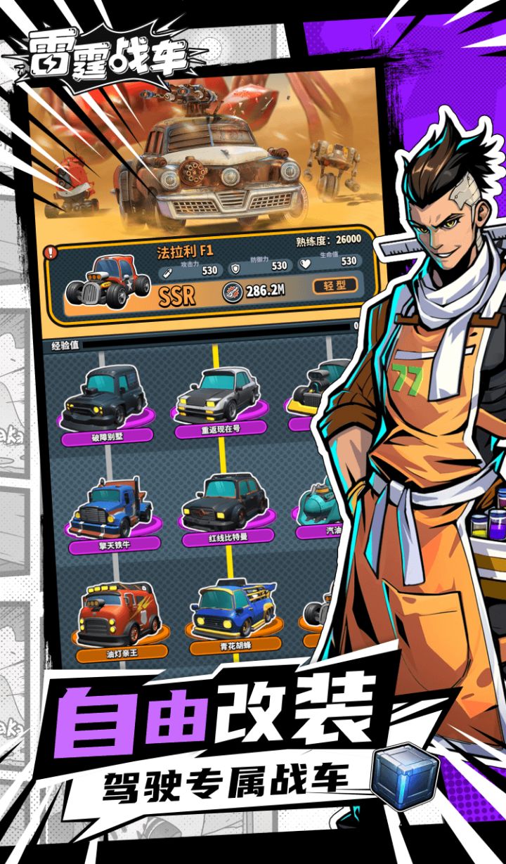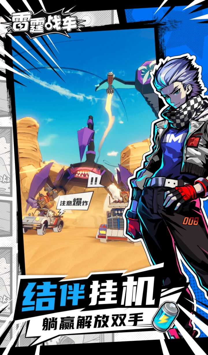 游戏名称#雷霆战车 这是一个危机四伏的异域废土世界!这里的居民可不是人类——而是拥有智慧的动物文明! 当外星虫族入侵,动物勇士们奋起反抗,无奈利爪与尖牙无法抵抗坚固的虫族甲壳,曾经的家园逐渐沦陷…… 一场未知的意外将赛车手们卷进了这个面临生死存亡挑战的星球🌎⚙自由改装: 用搜刮的零件升级你的战车💥更强的引擎、火炮、装甲——升级升级再升级‼️😴轻松放置: 离线时战车自动搜集资源,抵御敌人。