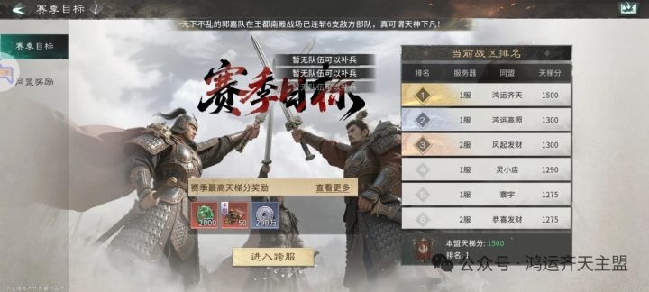 星汉同辉联盟备战4月16号新区欢迎大佬咨询,区服名统一后可改,为荣耀加冕500人大群期待各位大佬大驾光临一、管理军费 ①核心管理军费 双卡+128红包 ②处理联盟矛盾 双卡+100元红包 ③战略官+指挥 双卡+500元红包 ④赛季末管理专属红包1000元 (管理群进行发放)要求带联盟统一前缀,正常玩的轻轻松松。 赛季末洛阳高战群发千元以上群红包二、活跃奖励本周高出勤报销
