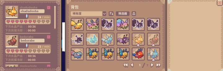 这里是花园,将捕捉或是培育的奇幻兽放这就会生产水晶。