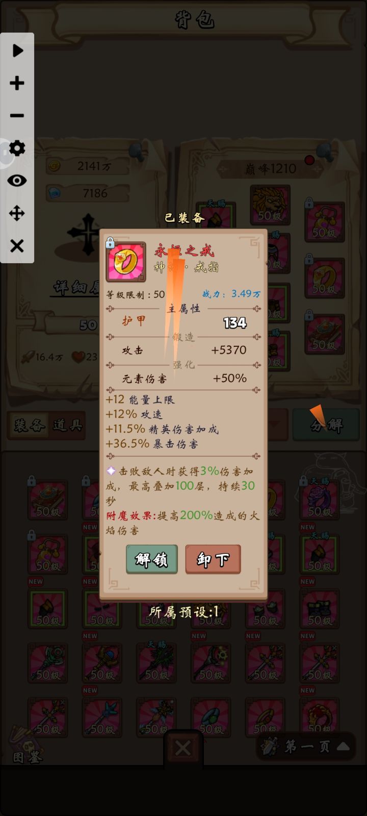 每天几个小时就满包,需要添加更高级装备自动回收了!!!坐等添加