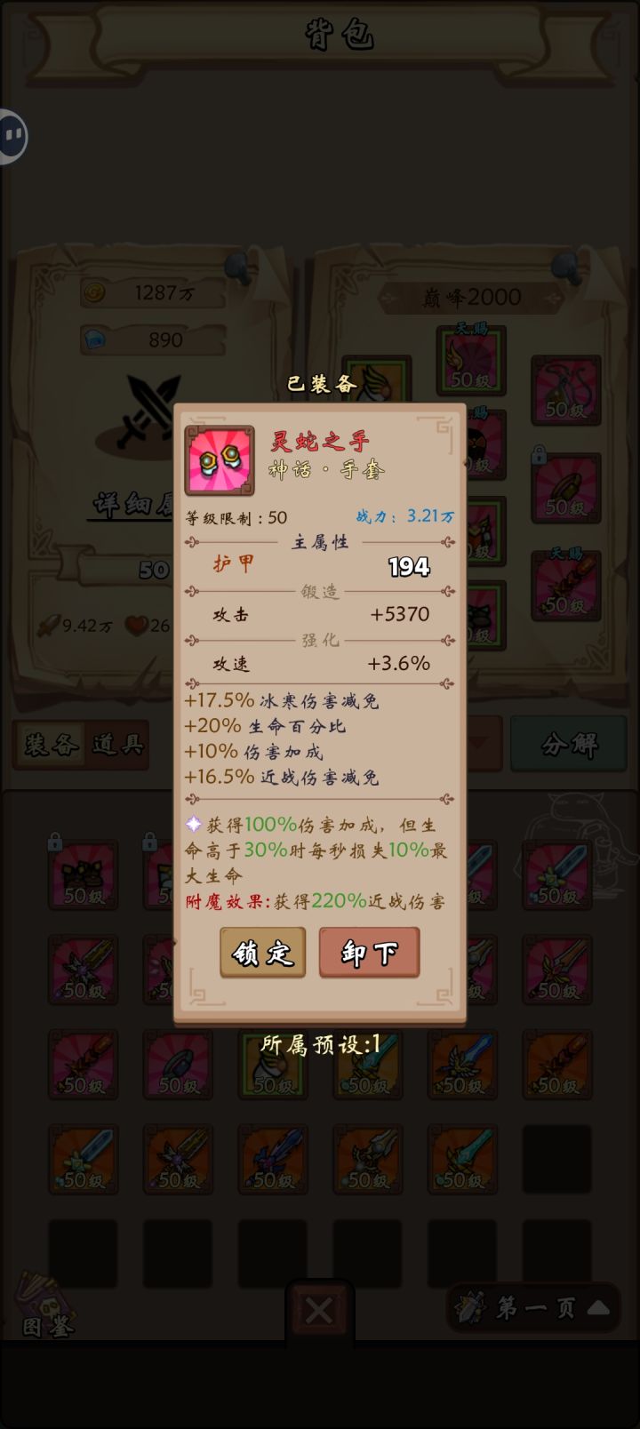 领主终于能打死第一只了,还剩50秒左右时间,第二只打不死。总体就是伤害加成最大化,不去点憾地击,点出千鸟的500%加成,再把减速鞋子换千鸟套,带上增幅里的减速技能就行了。