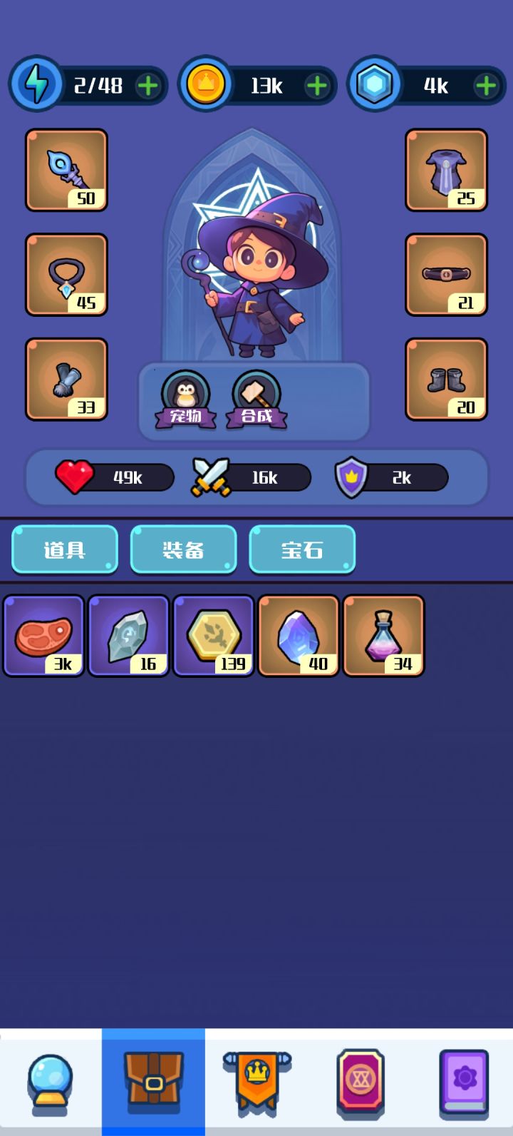 游戏做得不错,还挺解压的,没有故意卡关之类的烧操作,正常玩六天即可通50关。这个游戏移速很重要,所以天赋优先点移速,其次防御天赋第一个,其他无所谓。宝石带魔法球就行,带个冰箭结冰辅助,没怎么去刷宝石属性,有就用,毕竟没难度,不需要搞极限追求。后期制作如果能加上双人多人挑战(类似于“快来当领主”那样的合作模式),这个时候就可以适当调整一下收费项目,比如月卡,首冲(刺激消费),特权卡(终身制,收费不要