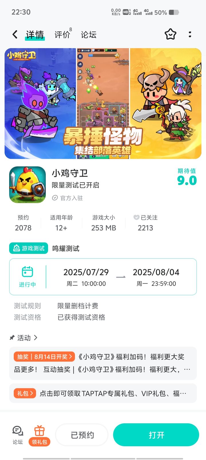 小鸡守卫丨限量测试 #2025TapTap游戏节 #2025暑期游戏清单 #今天游戏圈发生了啥 #游戏种草计划 #生活杂谈 #资讯评论员