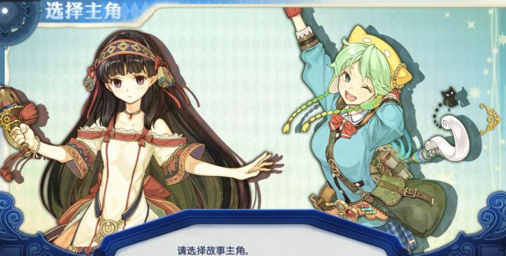 本作提供了夏莉丝堤拉与夏露罗蒂两位女角色,选择好游玩难度、并以夏莉丝堤拉视角执行采集、战斗、调和操作后,等至2D剧情过场动画放送完毕,玩家将从两名女角色中选择其中一名正式开始冒险之旅。