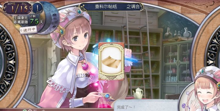 《萝萝娜的炼金工房》玩法依旧由回合制战斗与炼金调和两部分构成,回合制战斗还是很简单的,基本没有太高的挑战难度,而由于时间限制的设定,炼金调和方面就要花点时间琢磨了。本作中玩家需要在限定时间内完成委托任务,而调和、去采集地、睡觉都会消耗对应的天数,平时习惯慢节奏的JRPG,这时就会有种时间不够用的感觉,系列老玩家应该不会有太大问题,所以如果是新玩家的话,最好还是找攻略抄作业吧~