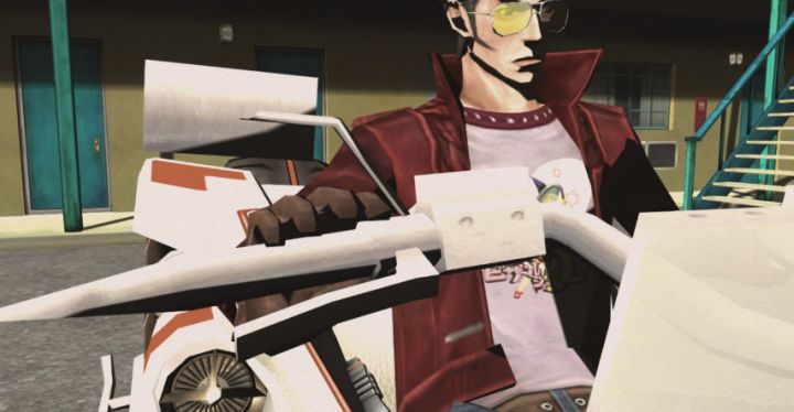 从一代起,这种源自于须田刚一先生、无厘头&黑色幽默感十足的叙事风格与演绎方式,就奠定了系列基调,成为了后续作品坚持的方向。而特拉维斯本身也被塑造成了一个很有魅力、特点鲜明的主角,同样进一步加深了玩家的映像。很难想象帅气和猥琐这两种非常极端的气质能在一个人身上融合得如此完美——平常他以一台非常拉风的摩托为交通工具,用夸张的体操动作螺旋式登场。