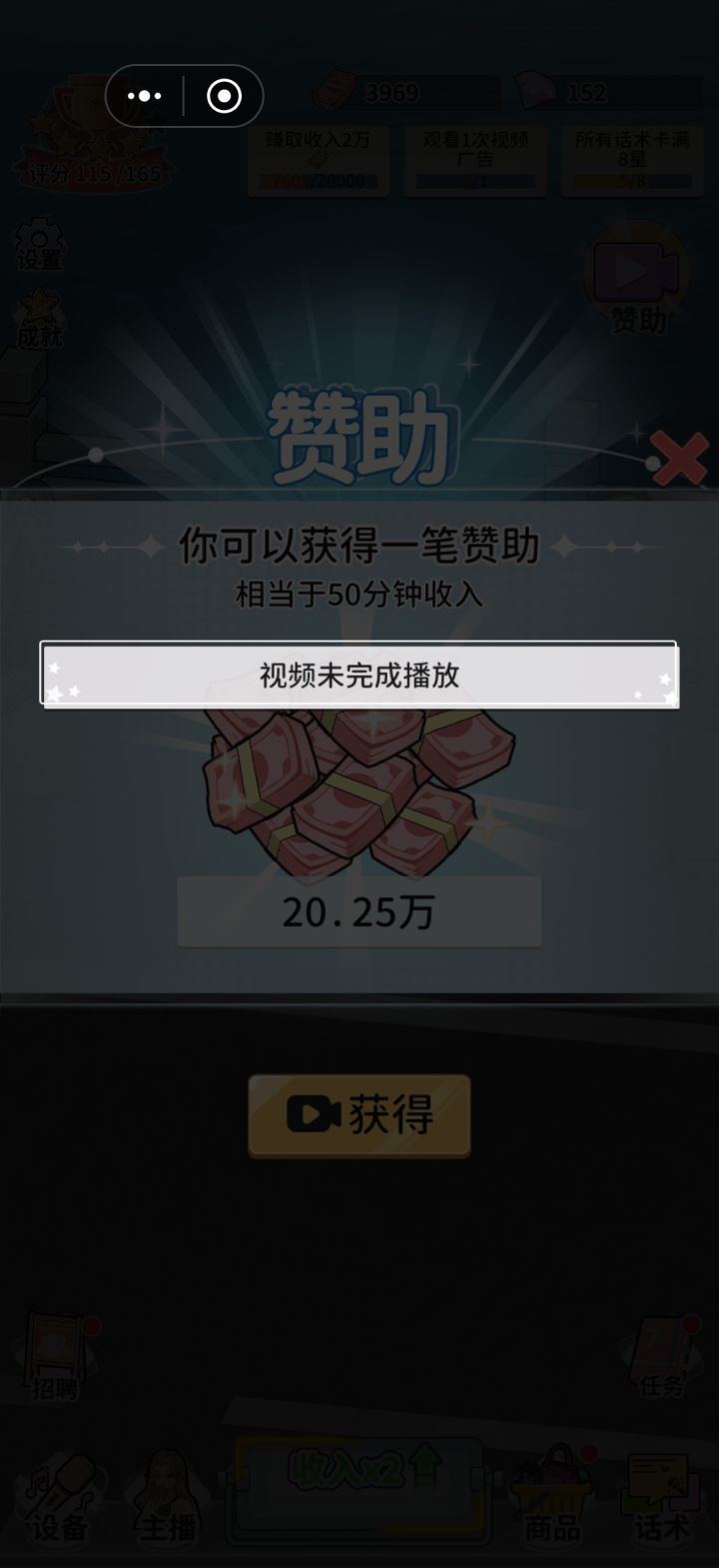 ⭐就是升级,抽卡,玩了一个多少小时,看了30个左右的广告,每个品类的主播只有两个,升级满了就会返还钻石,到后面就是等主播赚钱,完成任务,不会再有新的主播了,玩法比较单一