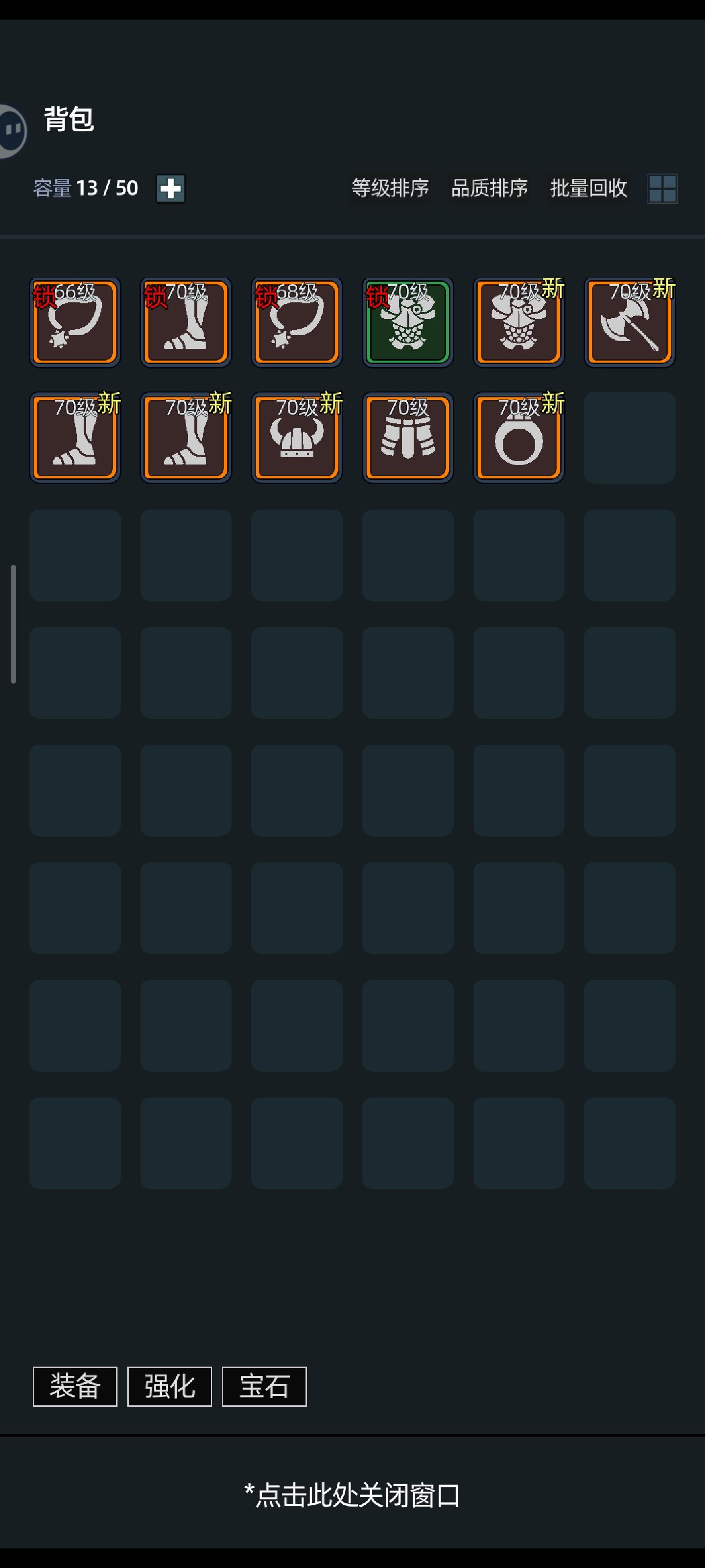 如图。1,装备回收给金币。2,打boss爆强化石。一次最高报20个。Boss多少级就报多少个。3,开局点头像,点兑换码,点一键补领。领取所有开局物资。4,然后学1级顺劈。激活下5,2级的时候学旋风斩。激活下6,有装备了就可以把那个自动回收打开,这个是不需要看广告的,可以直接使用的功能。7,可以的话支持一下,看两个广告,那个自动加血按钮就可以用了。8,40级以后的装备,传奇品质及其以