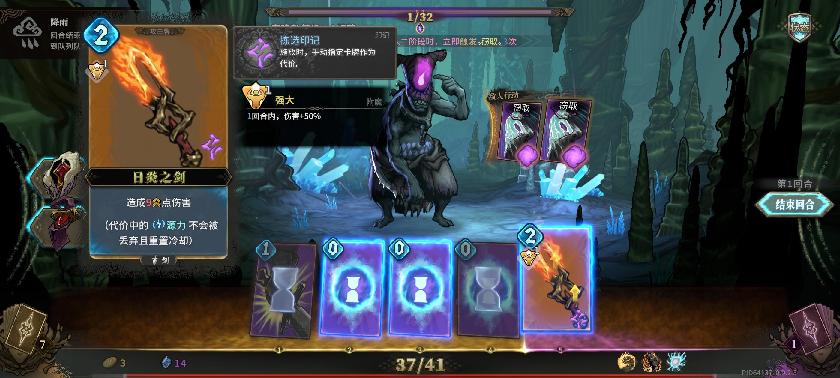 如图,无意间的构筑突然发现了战士的无限连斩,构成只要两个要素。 核心: 1.日炎之剑(卡牌):造成6点伤害,代价中的源力卡不会被丢弃且重置冷却。 日炎之剑+(卡牌升级):造成8点伤害,代价中的源力卡不会被丢弃且重置冷却。代价中每有一张源力卡伤害次数+1 2.灵巧架势(祝福):如果卡牌释放的代价都是辅助牌,则释放后重置冷却。 了解了以上的内容,那么想必大家都明白了,只需要有这个灵巧架势的祝福,