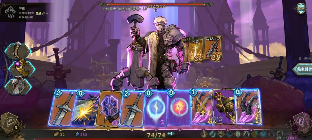 可惜没刷出加伤,伤害不高,打反击剑士得把抽牌卡当代价丢了,不过反击剑没砍破我护甲就打出复活了