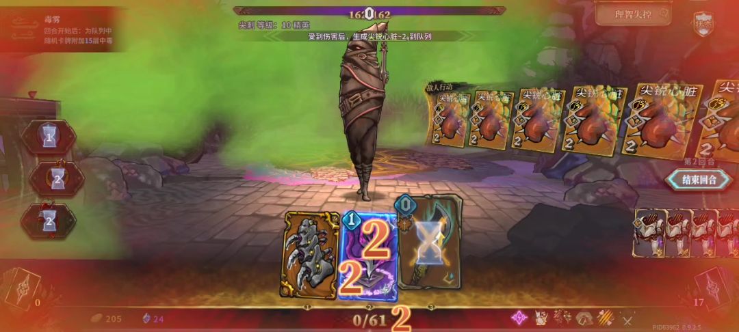 冰法触发百夫长的狂乱打自己护盾,再触发反击冰刺再触发狂乱打自己护盾无限循环。推测可能是因为嵌套结算没有结束,护甲牌还没有消失,导致无限结算卡死。