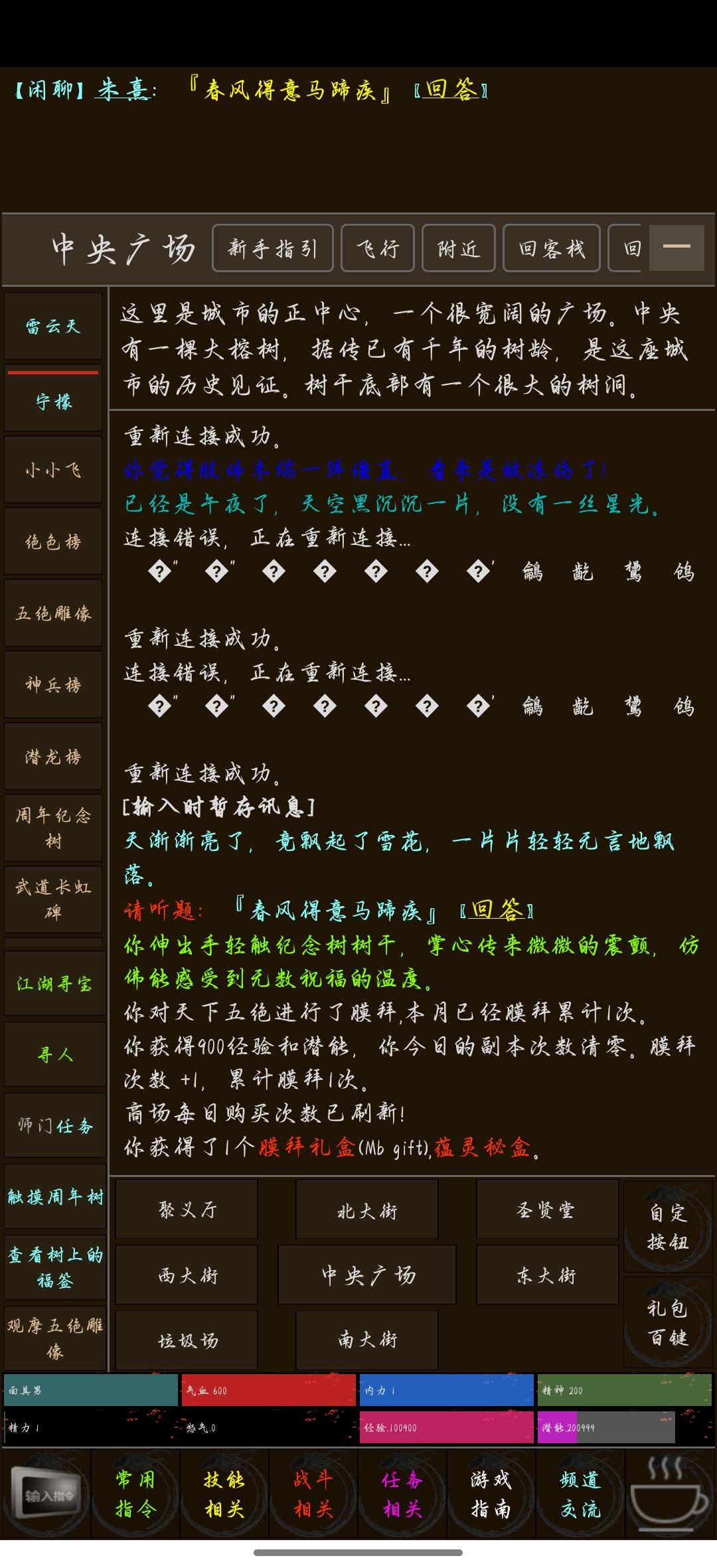 人数超多的mud,功能全,热心师傅太多了,非常活跃!巫师更新快,有活力的服务器