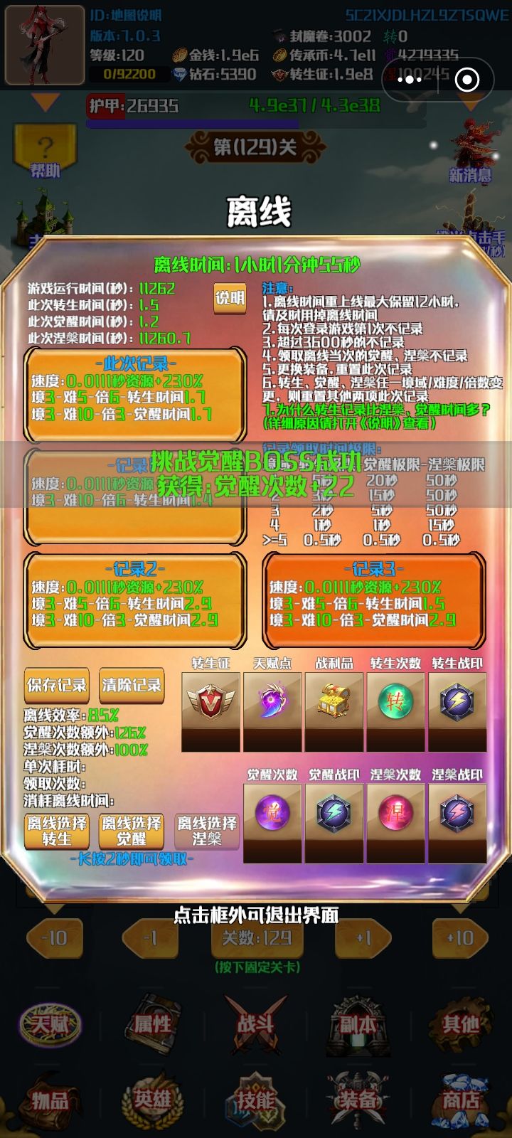 如图 在“觉醒设置”里面,将关数设置成“1”。这一秒钟的设置改变,让我觉醒时间从2.9变成了1.7!但发现这一细节,用了从萌新到境域四的时间,大约四个月。同理,涅槃也可以这样设置。