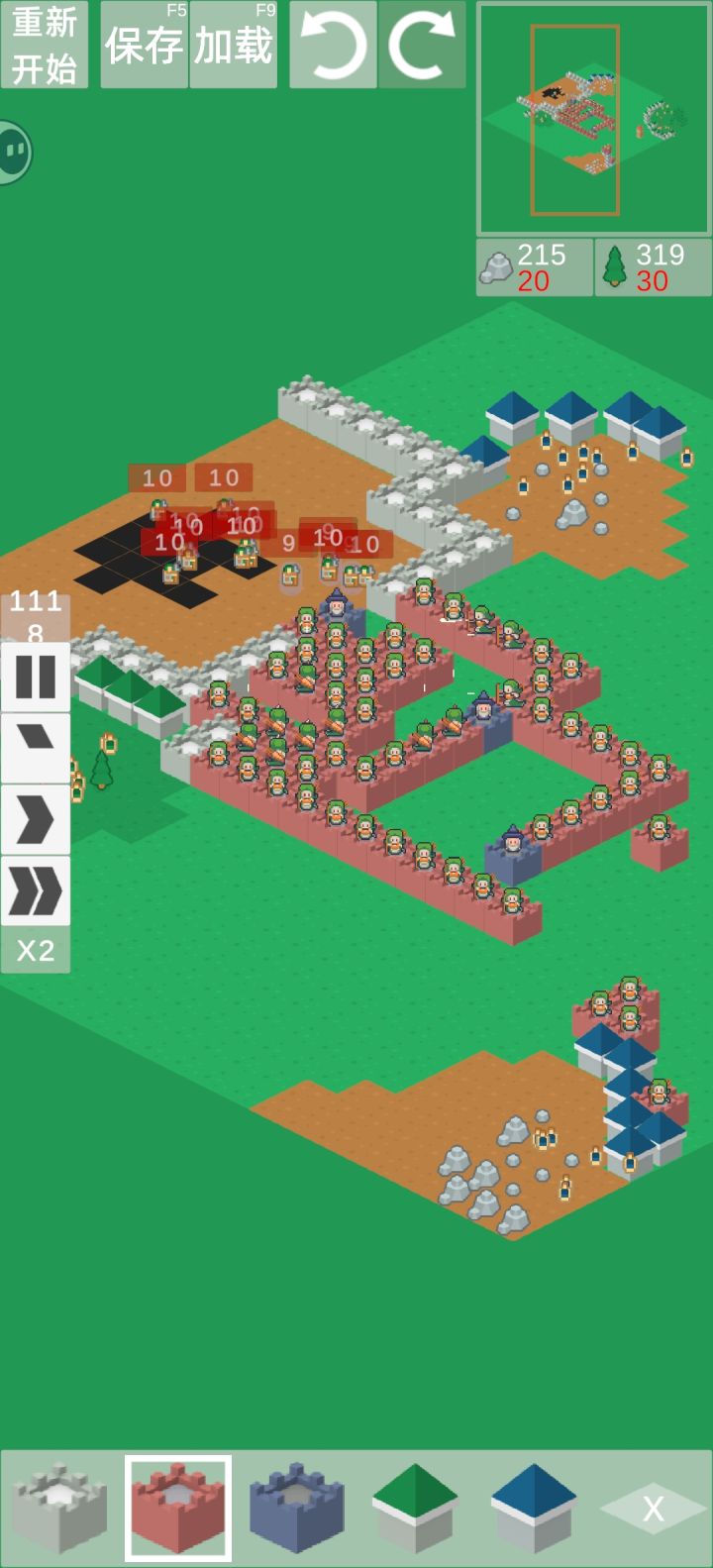 各位玩家好,这里是一份操作指南,在游戏初期,希望能让你对游戏有一个更好的了解。建筑物说明 创建防御塔守护建筑,一旦被怪物攻击血量到0即游戏结束。 怪物刷新地点,怪物还会随机从此处出现,并朝着建筑物进攻。 布置阵型抵御怪物进攻。按钮说明城墙:用来阻拦怪物行动路线射手塔:攻击周围的敌人法师塔:减速一定范围内的敌人伐木工:收集木材采石矿:收集石头剔除:销毁建筑操作指南 1、选