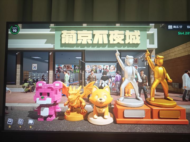 亲手搭建店铺的快感很直接,感受不到的就别来沾边了。摆货架看着简单,但高级的玩家总是在思考怎么摆能让顾客买得流畅不堵车,顾客体验要好,环境也得好看。贴个海报,放个手办,美滋滋开始开卡包。今天我肤色如何?只见金光一闪,一张价值连城的超稀有扑可梦闪卡掉进收藏册,我直接原地飞升加冕为众儿子的父亲。后面攒了点钱,解锁新的卡牌世代,解锁新的装饰品,有种真在慢慢扩大生意的错觉,当然这种错觉都是朋友们给的,几家欢喜几家愁,虽然知道这些扑可梦卡牌原型但不妨碍收集时的满足。店外面那条街也不是摆设,没事就翻垃圾桶,里面有的时候确实藏着好东西,偶尔能翻到点小钱甚至卡牌,就是后面连垃圾桶都要和联机的抢。