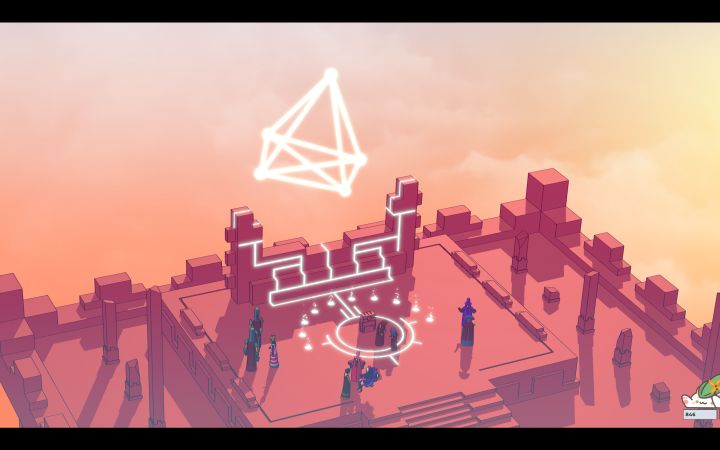 玩的时候真的有点在学语言的感觉,最后真结局在塔顶上三棱锥转来转去变成每个民族最重要的字时真的很感动。不同语言的主谓宾语序、肯否疑、复数之类的都有不同,打的时候就在想“哦这个语言和我知道的某个语言比较像”通过这种方法破解出来,感觉制作组肯定也参考了各种语言。在游玩的过程中,单一民族的语言可以根据符号形状大致推理出是什么类型的词,比如名词或代词、动词、地点类型的名词、元素等等,语言符号也都有点象形的意味。