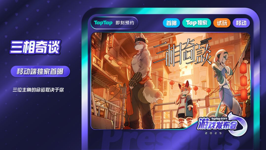 大家好!昨晚TapTap的发布会上《三相奇谈》移动端正式首曝!目前还在早期筹备工作中,大家敬请期待~ 主会场链接:https://www.taptap.cn/poster/presents2025?utm_medium=coop&utm_source=gamea&utm_content=aid1066 #2025TapTap游戏发布会 #百款游戏填满夏天