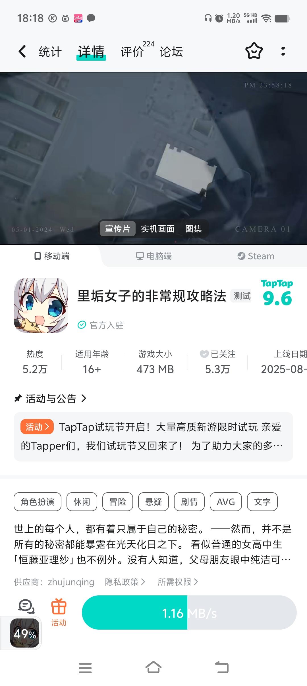 我们开发的、故事背景为日本的女主视角悬疑AVG《里垢女子的非常规攻略法》正式公布啦~如果大家感兴趣的话,欢迎关注/预约/添加愿望单或者讨论交流喵~由于暂时没有版号,日后主要会在steam平台售卖,所以欢迎前往steam添加愿望单!各平台主页:steam:https://store.steampowered.com/app/3437220taptap:https://www.taptap.