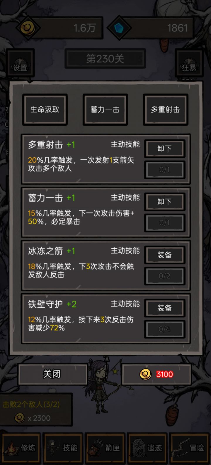 技能学习逐步加金币重生了还不给重置下次抽技能的金币打怪得的金币也少得可怜建议改一下技能系统