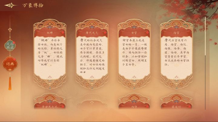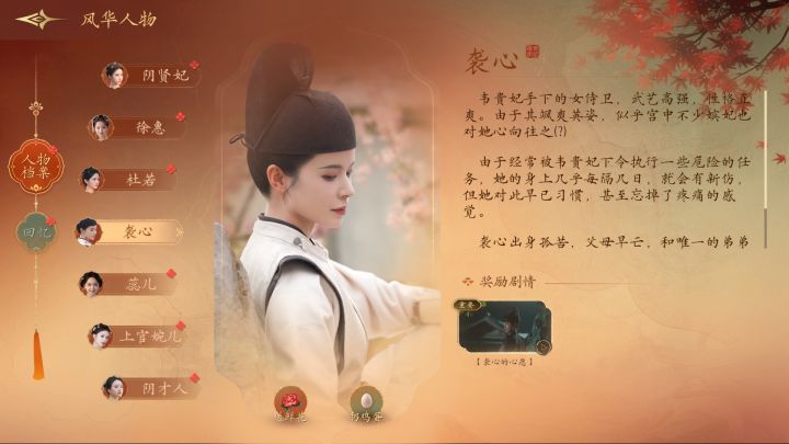 这段开场剧情,通过贵妃的外貌与你的内心对话,将“惊艳”两字直接传达给我们,随着游戏进度的推进,你会发现这不只体现在韦贵妃身上,游戏时时刻刻都在通过服饰、歌舞、妆容与环境等元素让玩家感受到与贵妃身上同样的惊艳。