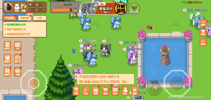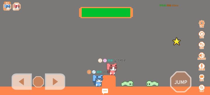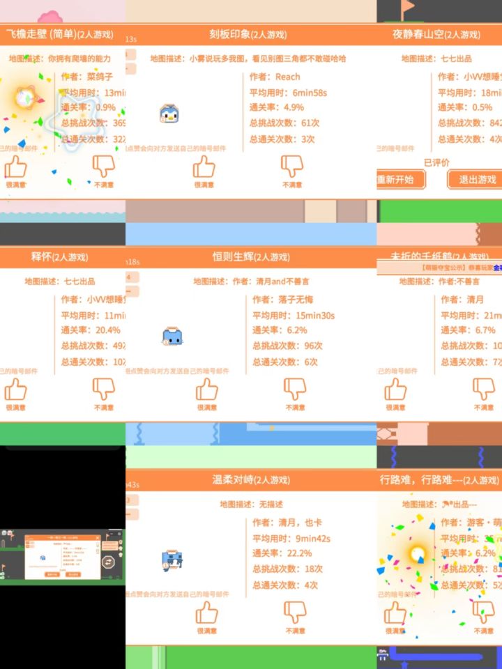 2D平面派对类游戏,房间支持2-10人同时游戏,玩法内容十分丰富。新手关卡分三个难度,还可以玩玩家自创的关卡。游玩需要和别人组队,最少两人,类似双人同行的方式,关卡需要相互配合才能完成,支持语音沟通。游戏过程中若有任意一人挂机,就很难进行下去,是个需要高DAU的游戏。