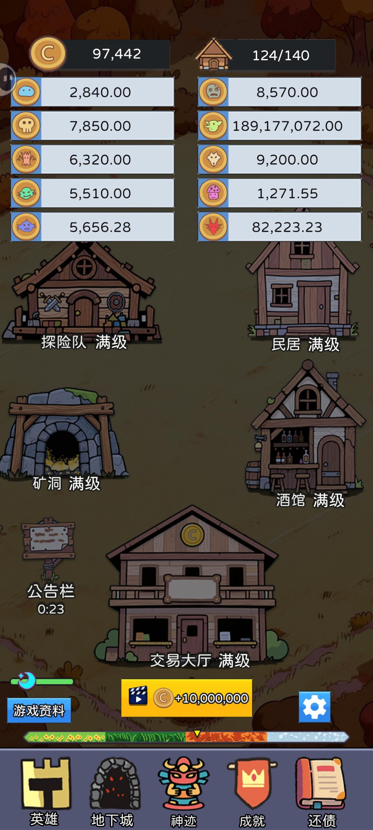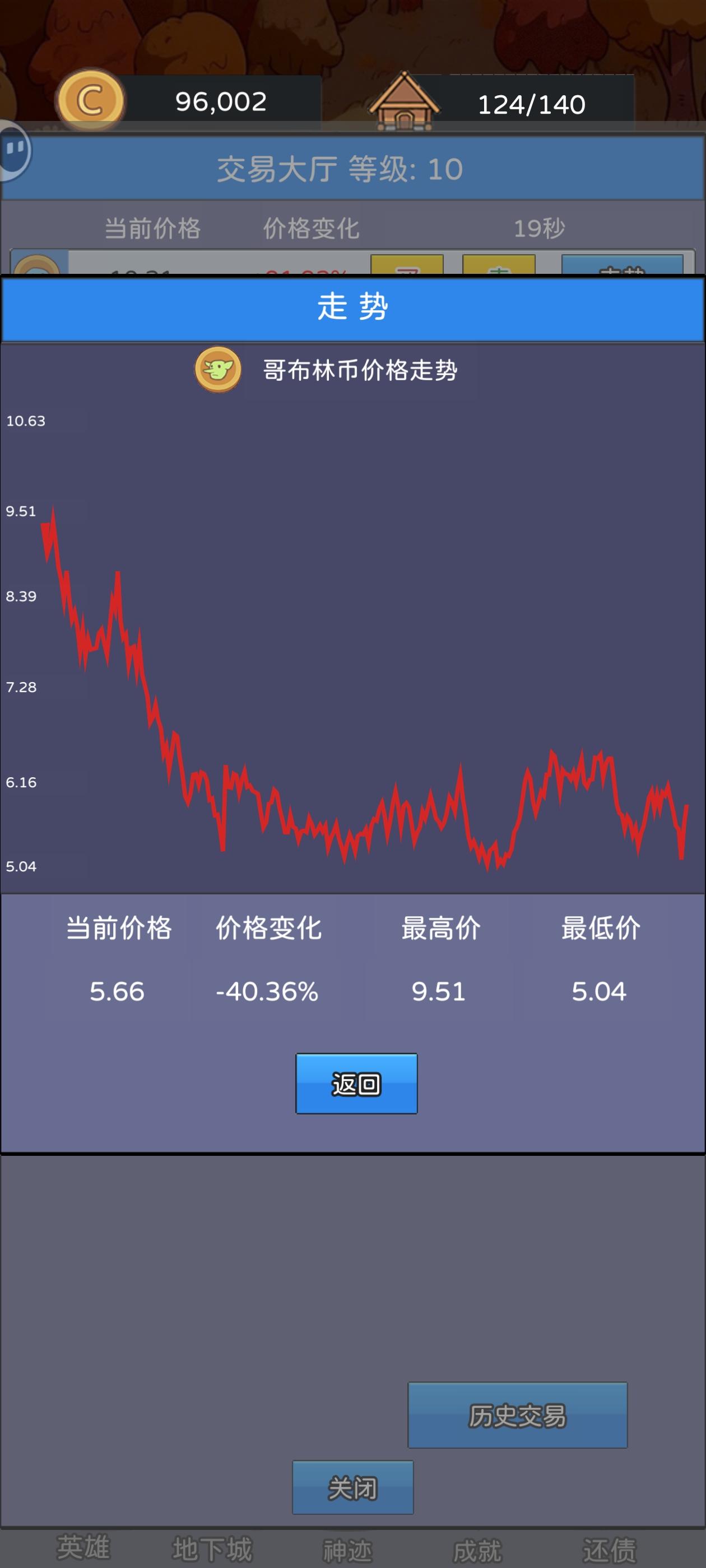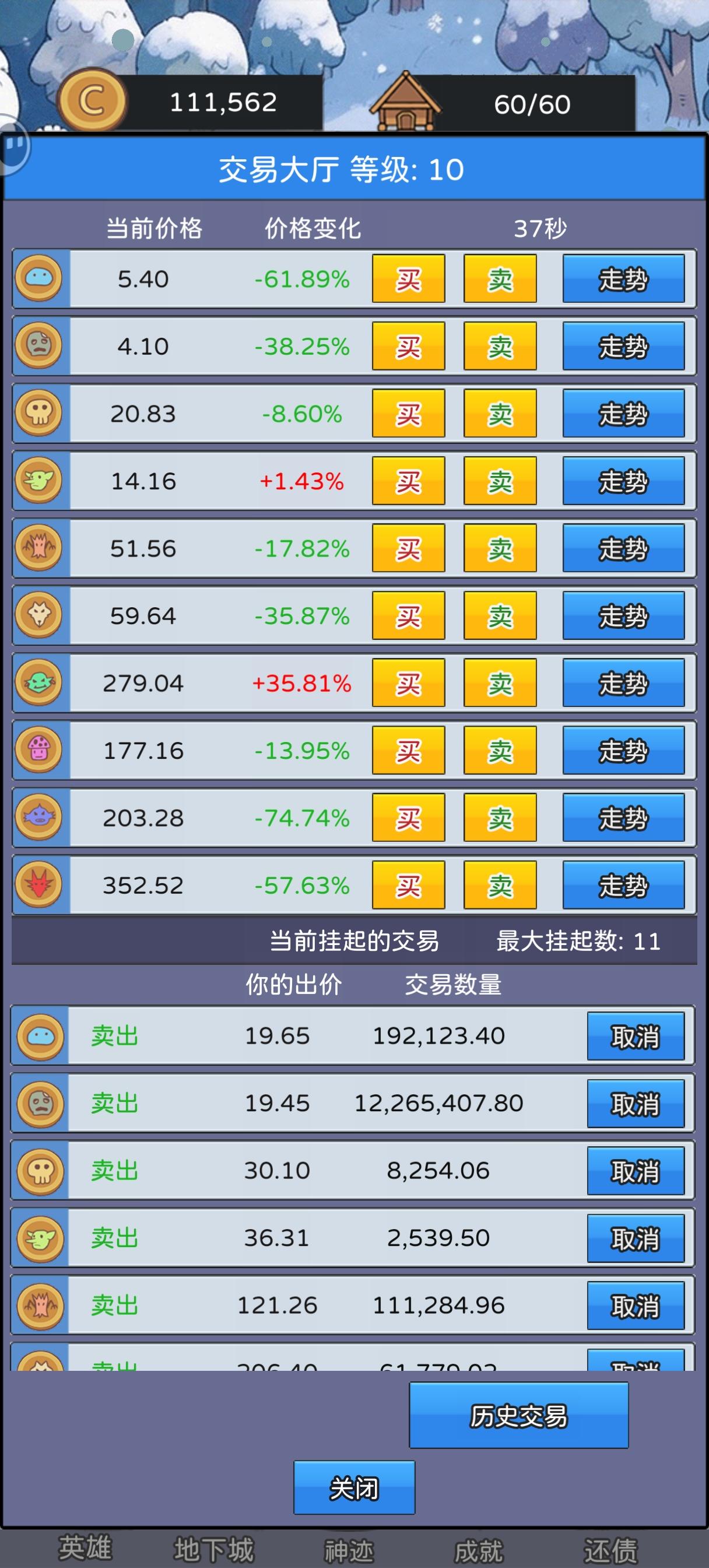 小技巧:在交易所里卖出或者买入魔物币时,并不一定要按显示的价格购买或者卖出。卖出时可以适当出高一点的价格,这样交易会挂在交易所内,等到价格涨到了你所挂出的价格会自动卖出。买入也时同理,可以低一点价格买入,当魔物币价格降到了你所挂出的价格会自动买入。前期一定要先把金币收益和离线收益先点上来。毕竟睡觉都有更多钱拿是最爽的。而英雄最高等级则可以放到最后再升级,毕竟前期根本升不到最高级。酒馆里雇英雄