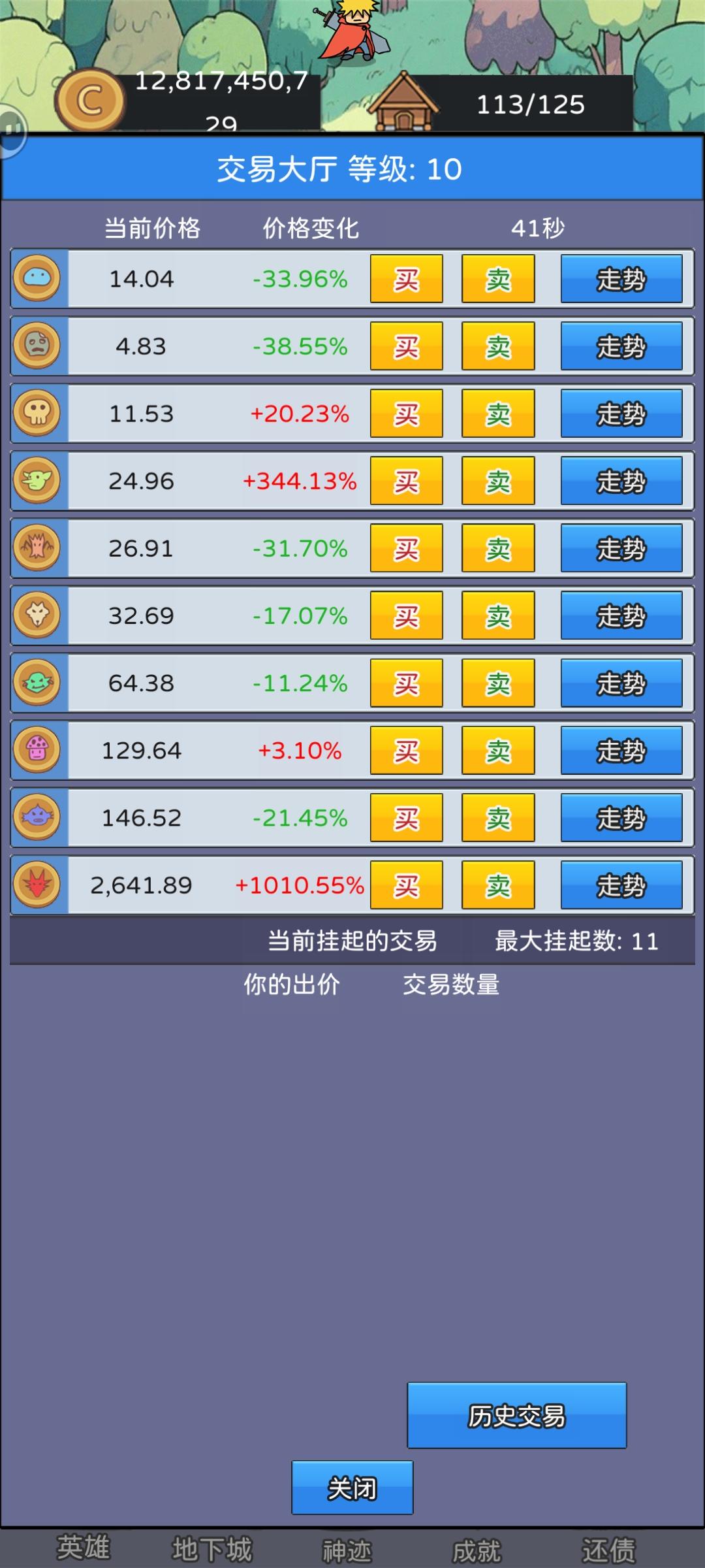 1.保底机制:游戏中的各种币有保底价格,例如史莱姆价格为2时,假设下一次是跌,但是价格并不会到2以下,可能是瞬间变成了3.8,利用此机制可以在低价梭哈,实现财富翻倍;即使公告栏事件是跌,也会触发保底机制。保底价格如下:史莱姆币 2 建议入手价格2-2.3僵尸币 3 建议入手价格 3-3.4骷髅币 4 建议入手价4-4.5哥布林币 5 建议入手价格 5-5.6树人币 20 建议入手价格2