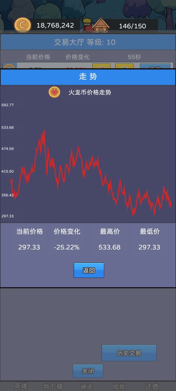 按照论坛老哥的攻略。触发保底买的。翻倍卖的。2天时间干了之前半个月的钱。1.保底机制:游戏中的各种币有保底价格,例如史莱姆价格为2时,假设下一次是跌,但是价格并不会到2以下,可能是瞬间变成了3.8,利用此机制可以在低价梭哈,实现财富翻倍;即使公告栏事件是跌,也会触发保底机制。 保底价格如下: 史莱姆币 2 建议入手价格2-2.3 僵尸币 3 建议入手价格 3-3.4 骷髅币 4 建议入手