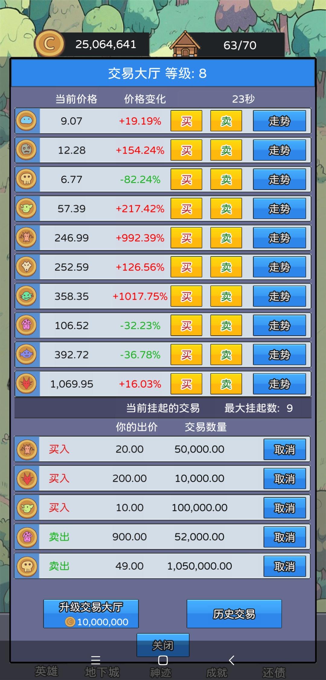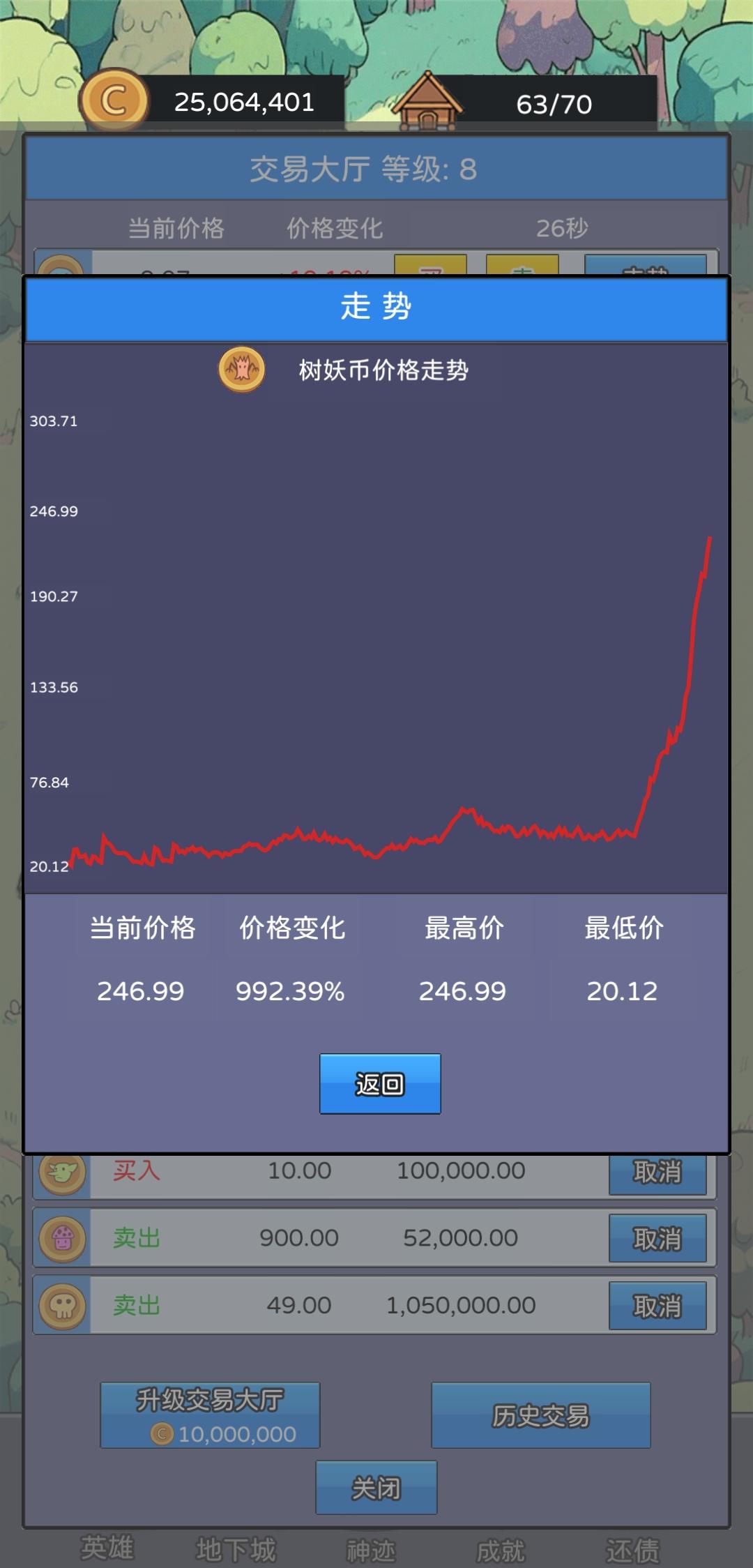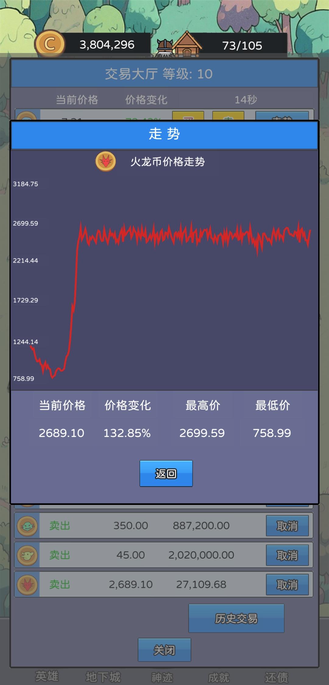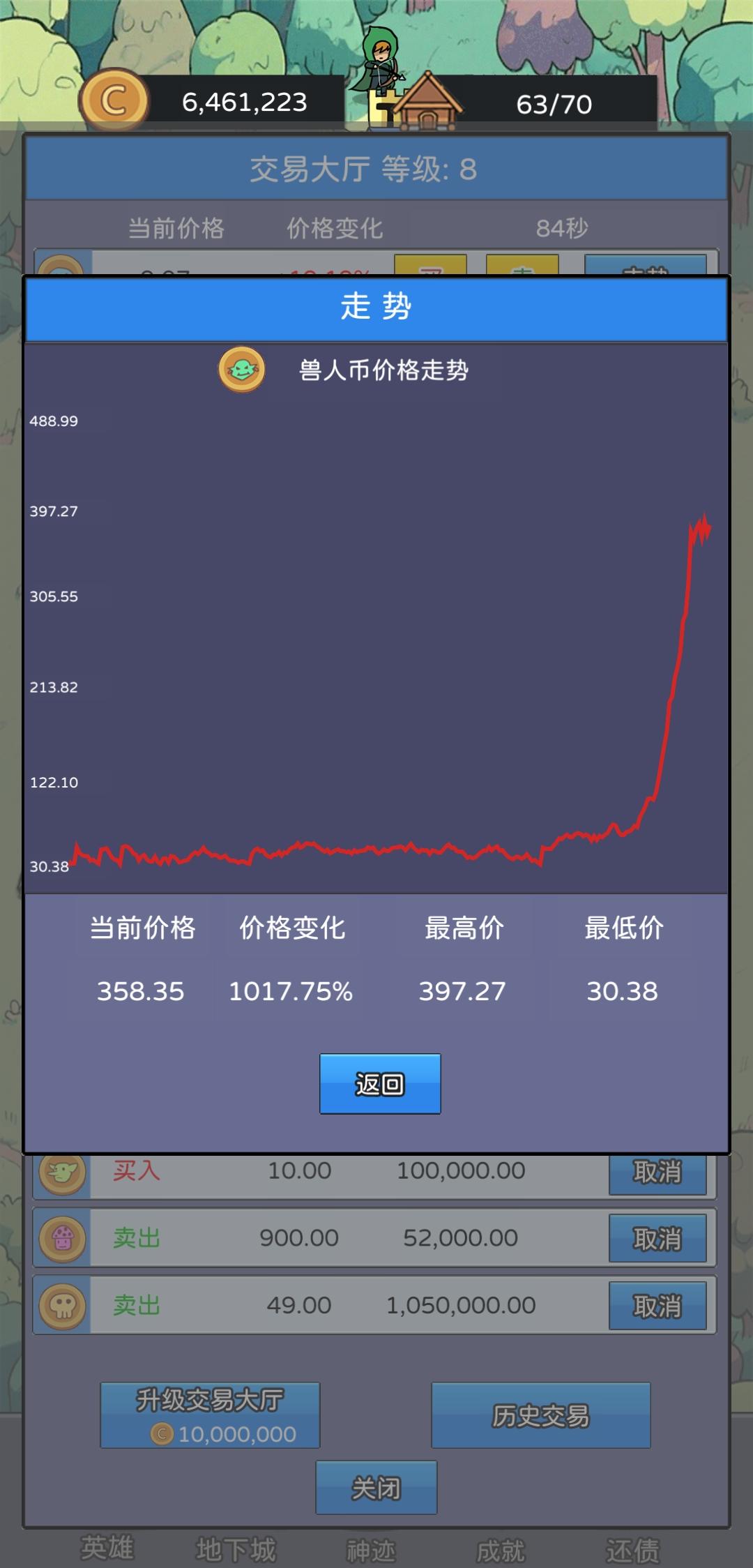 1.保底机制:游戏中的各种币有保底价格,例如史莱姆价格为2时,假设下一次是跌,但是价格并不会到2以下,可能是瞬间变成了3.8,利用此机制可以在低价梭哈,实现财富翻倍;即使公告栏事件是跌,也会触发保底机制。保底价格如下:史莱姆币 2 建议入手价格2-2.3僵尸币 3 建议入手价格 3-3.4骷髅币 4 建议入手价4-4.5哥布林币 5 建议入手价格 5-5.6树人币 20 建议入手价格2