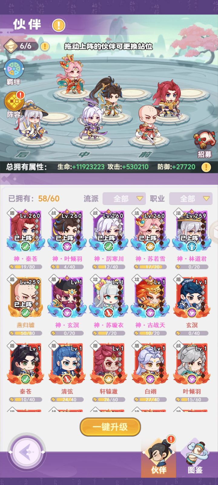目前毕业配队如上图,PVP可以把林道君换成苏璇衣。解析:燕归虚 提供全场护盾,护盾存在期间减伤,护盾破碎后眩晕敌方。秦苍 提供全场护盾,同时给对手上寒冷减攻速,满层后冰冻,护盾破碎后减少技能CD。叶倾羽 在队友使用技能与触发被动时,给自己叠真意,增加自身技能伤害,大招造成5段伤害,每段伤害索敌随机可重复选择。苏若雪 对有异常状态敌人造成额外伤害林道君 对减少敌方大量防御,并附加快剑使其