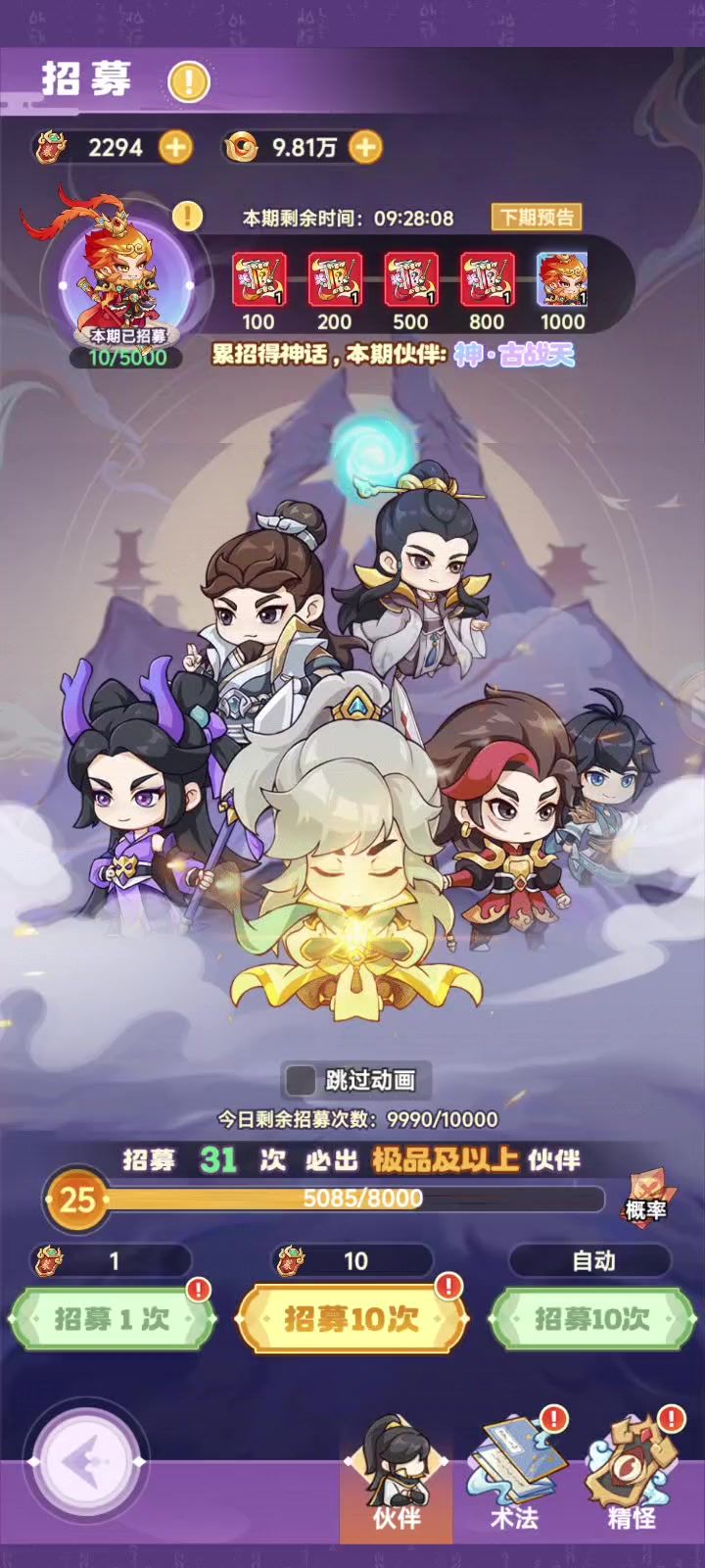 百抽欧皇挑战赛参与 东荒40服 修仙者110291 招募等级2,100抽抽到1个极品