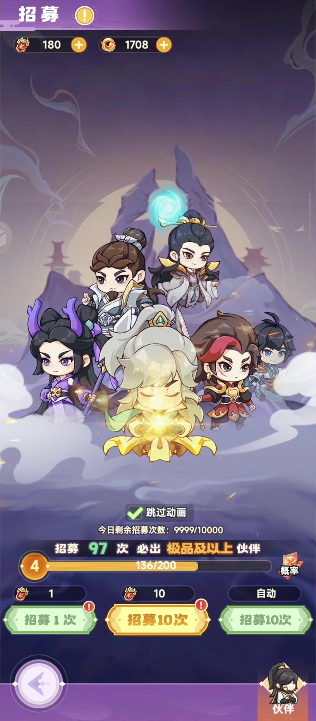 百抽欧皇挑战赛参与 东荒40服 修仙者110291 招募等级2,100抽抽到1个极品