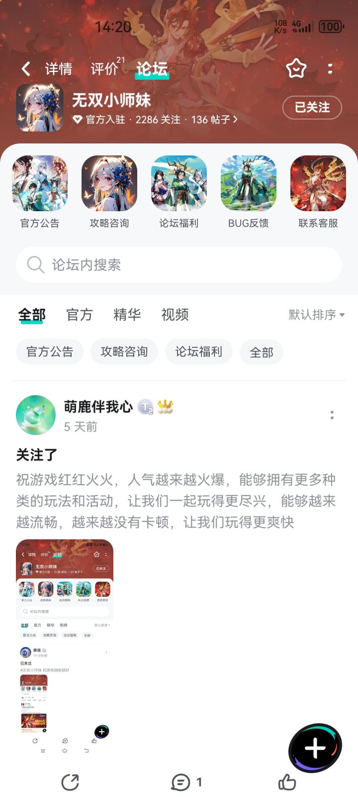 【京东卡抽奖活动】▶ 参与方式 1.点击关注《无双小师妹》并发新帖晒截图 2.在本帖下方评论区分享发帖链接即可【奖品发放】到达开奖时间后,由taptap系统随机抽取符合要求的幸运玩家,自动发放兑换码(对于同一账号大量故意发布评论刷楼层导致其他玩家中奖概率降低的行为的用户,将会可能被取消参与资格!)▶ 活动奖励 活动结束后将抽取1位幸运儿获得1张100元京东卡添加客服解锁更多机缘:📢