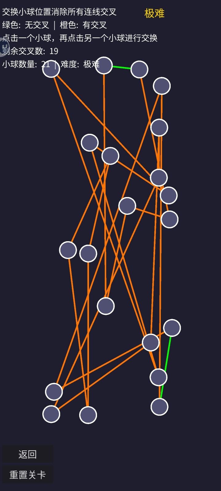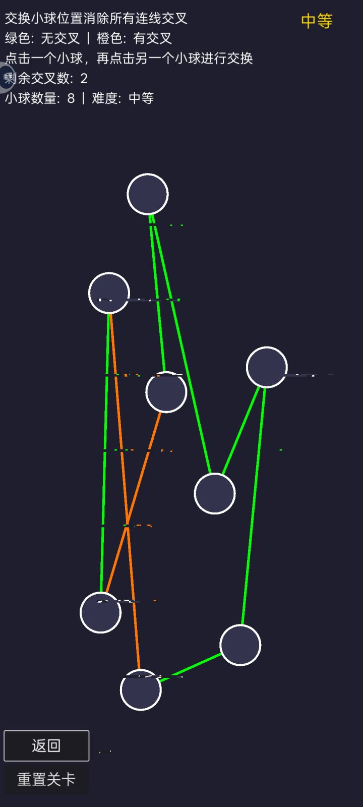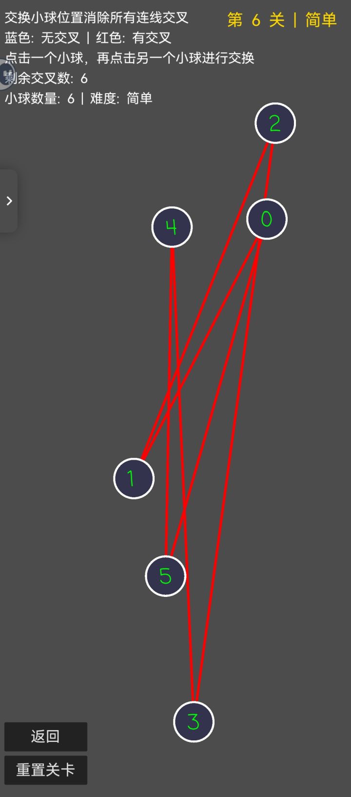 有交叉的就交换交叉两边的球,大部分交叉适用。另外是不是有bug,分屏退出去结果直接重置了()