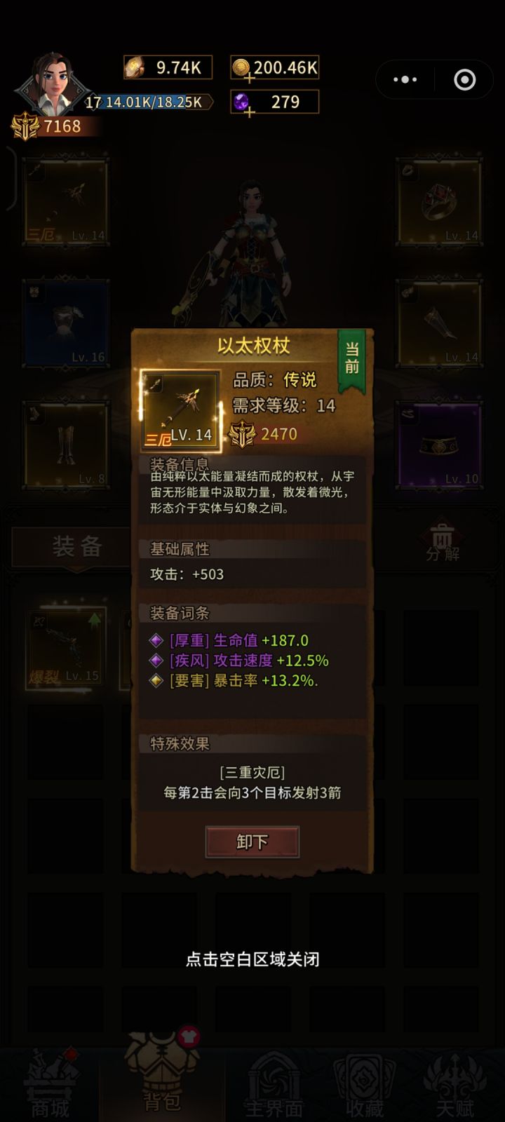 就跟弓箭传说类型差不多,可玩性太差就只有不停的换装备才能玩,我这几件装备我起码看了200多个广告,这都不算离谱,离谱的是推荐关卡战力6000我都7000了,关卡里面刷一个回血的精英怪我打不死我擦,什么记忆吧破游戏