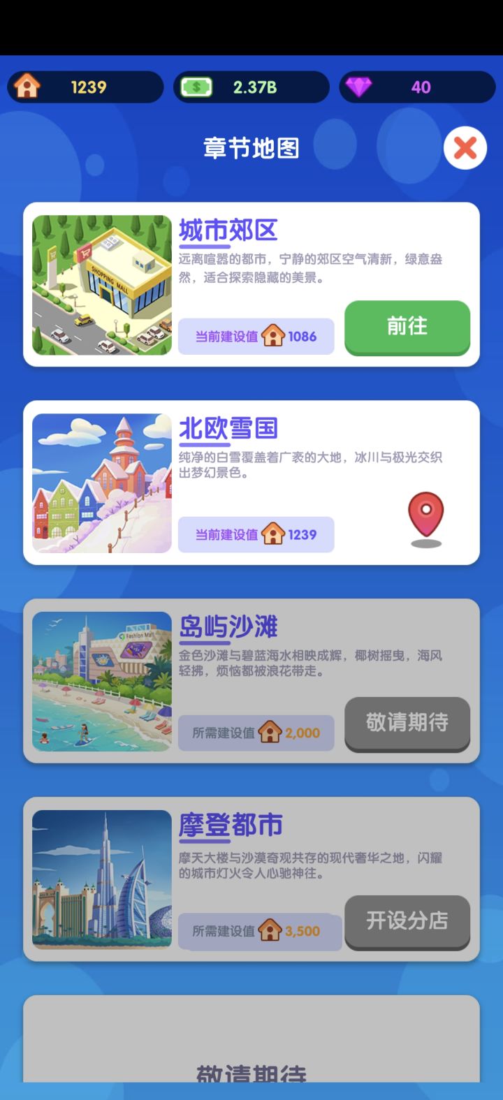 城市区域有钱没地方花了,北欧区域没钱用,如果两个用钱的地方能共同就好了,城市全部升级完了,钱也用不到了,算是结束了,给的钱也用不到了,北欧从新开始就得重新看广告,看完还是这个样子没意思