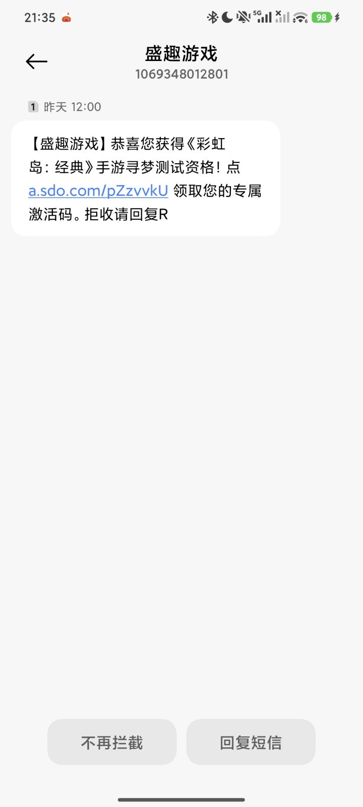 亲爱的岛民大大们本次寻梦测试测试时间为:1月29日12:00-2月12日24:00本次【彩虹岛:经典】寻梦测试的资格将通过短信激活码的方式发放至有资格岛民的手机号中,请岛民于1月26日起查看短信信箱,以免短信被拦截。注:官方从未授权任何第三方平台出售《彩虹岛:经典》寻梦测试激活码,所谓“内部码”多为虚假序列或被盗资格,购买后可能面临“钱码两空”。若发现此类违规售卖行为,可向官方举报。#彩