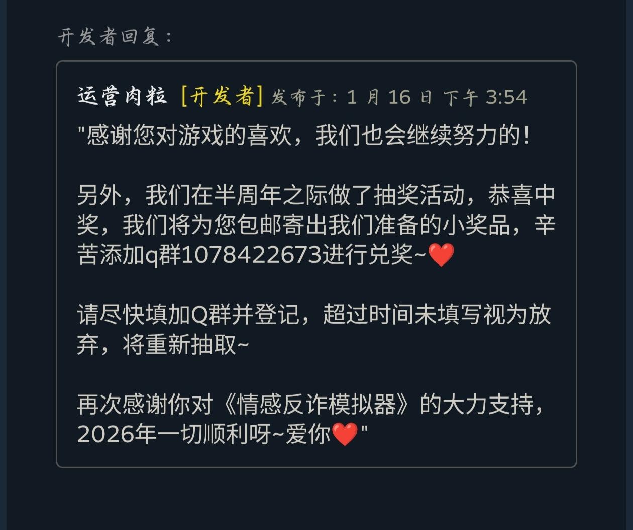 #今天游戏圈发生了啥 #主机单机 近日,《#情感反诈模拟器#》(原《#捞女游戏#》)制作组在游戏社区发布了一封感谢信,游戏制作人木飞、导演胡耀辉、“陈欣欣”演员刘梦茹分别在信中表达了自己的感想和对玩家的感激(图1-图2)。然而导演胡耀辉在信中因为一些言语措辞问题,引发玩家质疑“分不清谁才是真正应该感谢的”(图3)并纷纷在Steam打下差评或申请退款。#情感反诈模拟器导演道歉# 在感谢信发布后不
