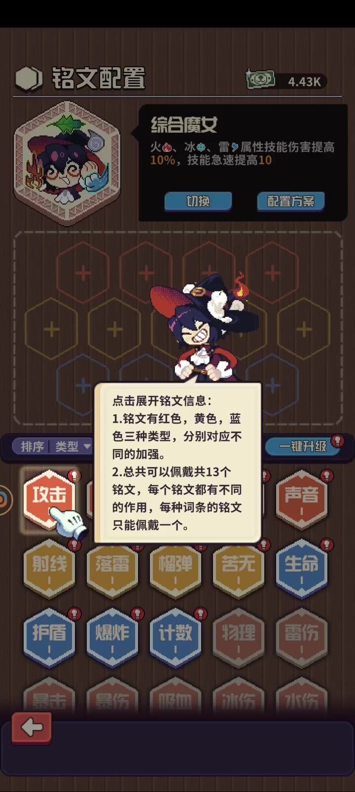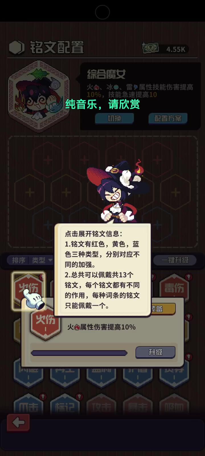 核心技能:火墙(一个就够),酸雨(多多益善) 核心羁绊:三骑士羁绊 输出思路:在生存足够的情况下,有吸血最高,没有的话防御足够高也行,依靠骑士羁绊可以给技能附带百分比生命输出的效果,依靠火墙和酸雨的高频率击中效果可以造成更高的输出,仓库技能冷却好了就放上去,如此循环等级,五级就足够了金币全用来刷酸雨。