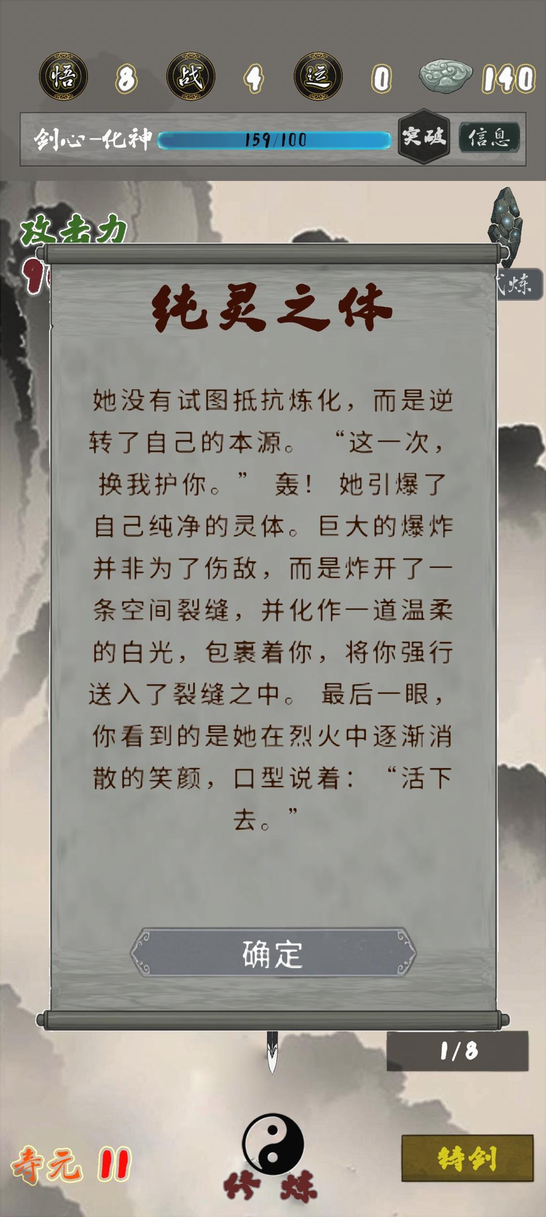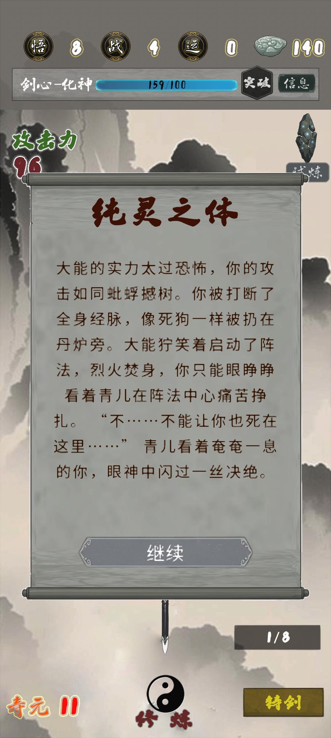 建议加一个成就:最强练气期哈哈哈哈,气运点满拉倚天➕鱼肠,商店买寿元➕浮生一梦,不用长生剑也根本死不掉,靠试炼石的寿命完全够用