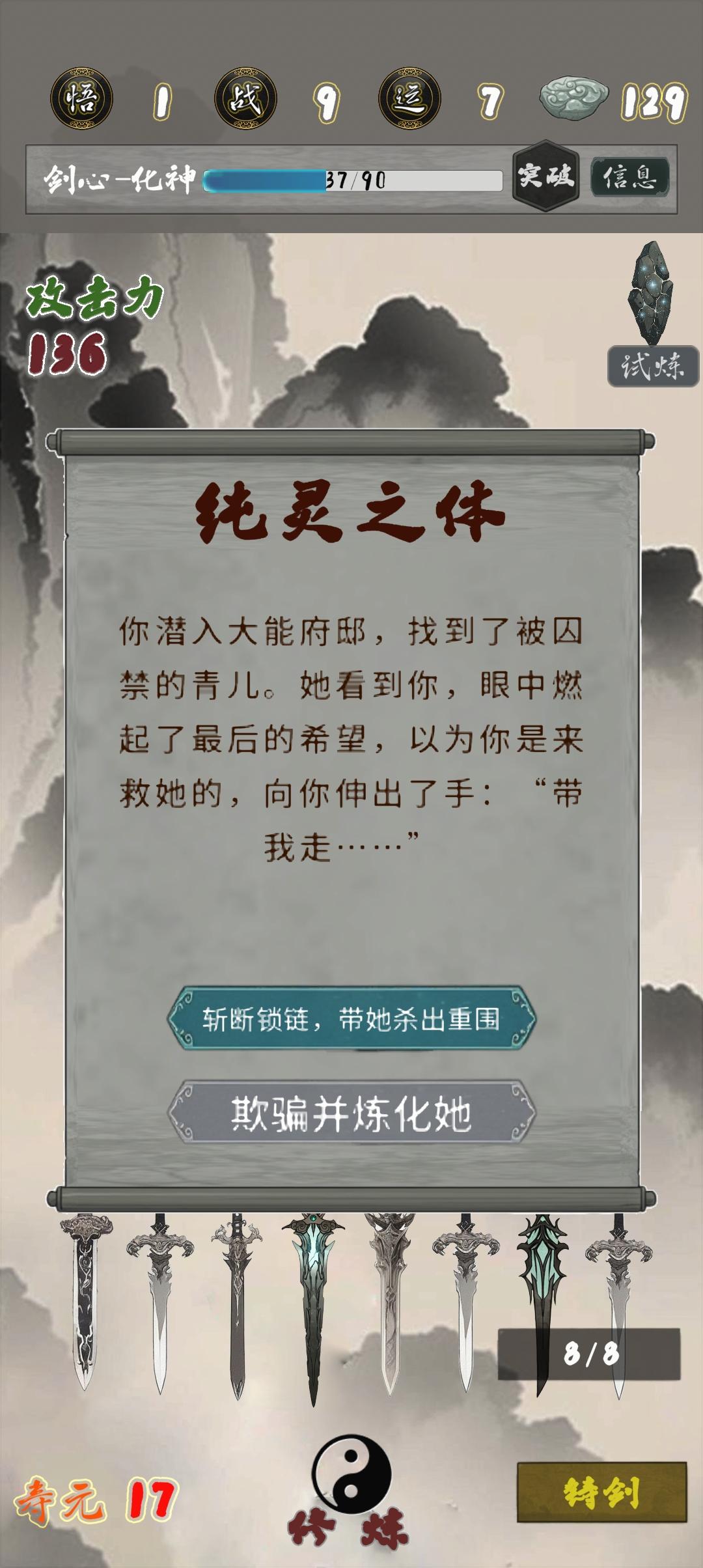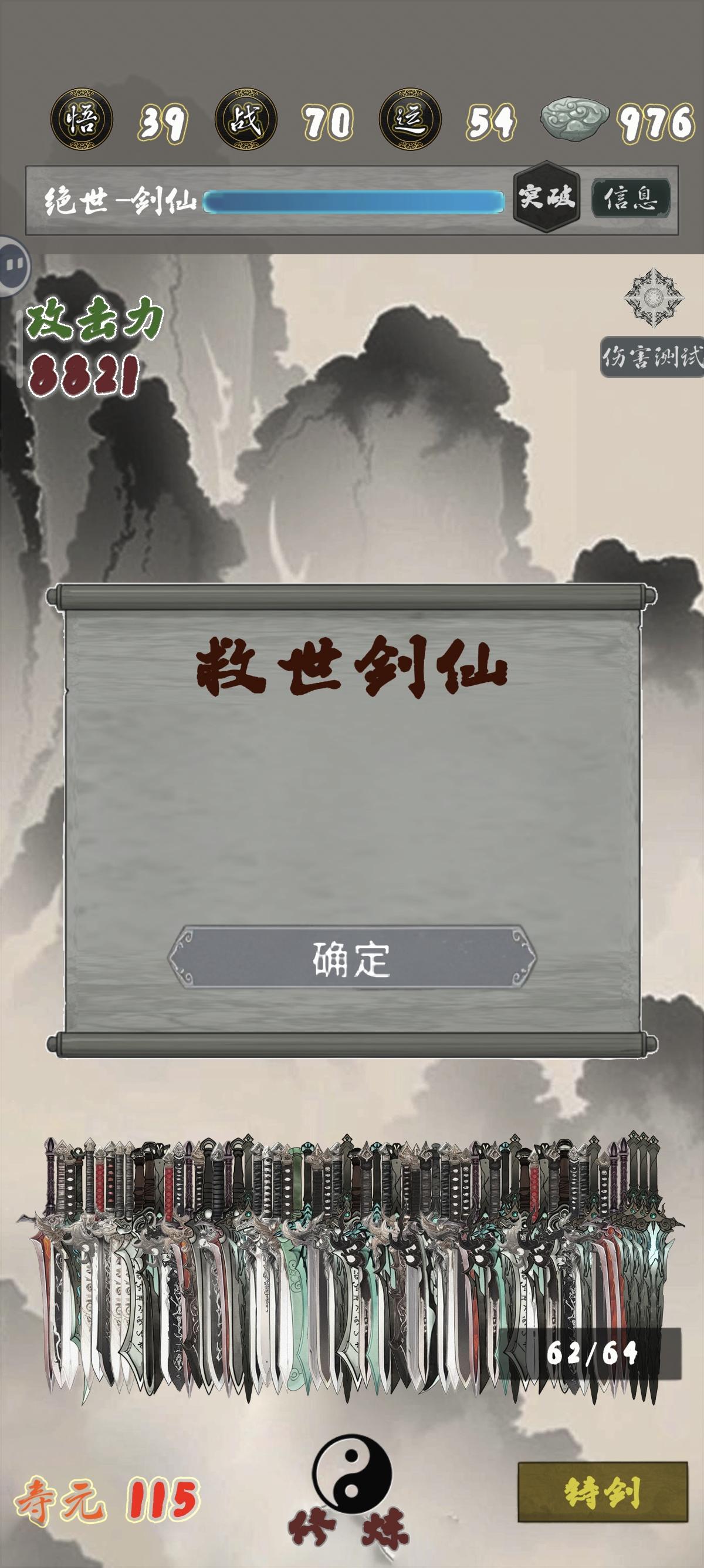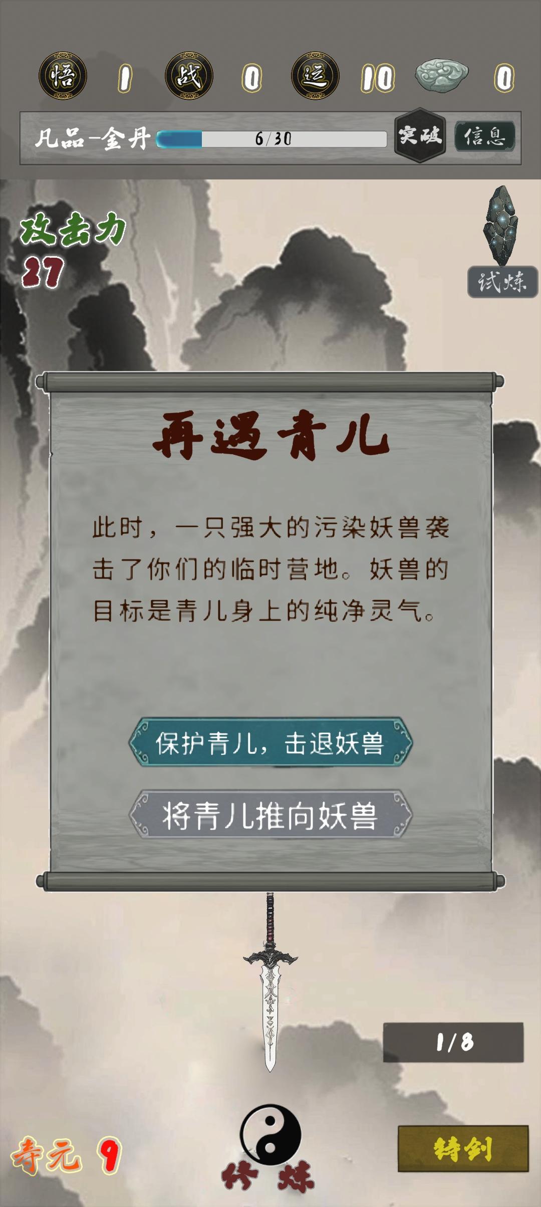 建议加一个成就:最强练气期哈哈哈哈,气运点满拉倚天➕鱼肠,商店买寿元➕浮生一梦,不用长生剑也根本死不掉,靠试炼石的寿命完全够用