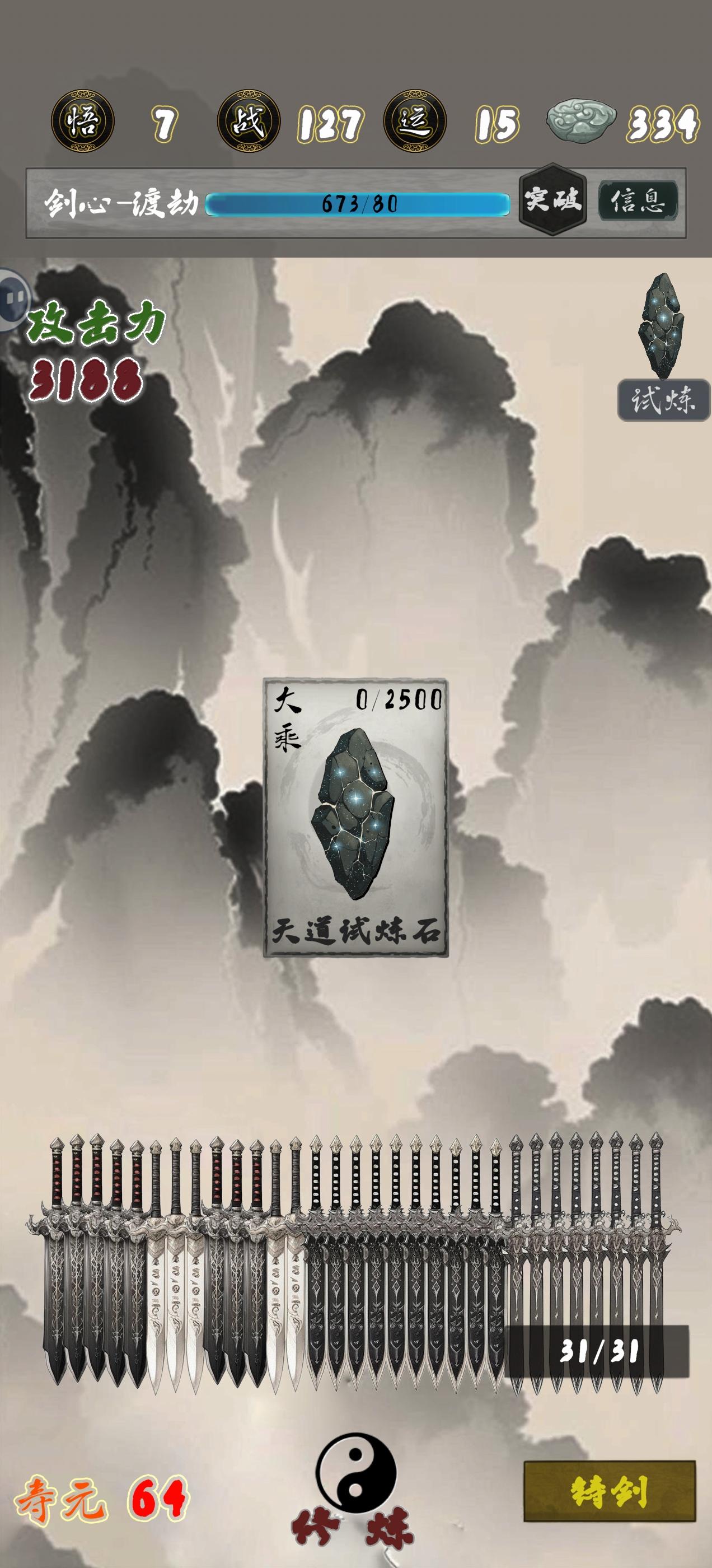 建议加一个成就:最强练气期哈哈哈哈,气运点满拉倚天➕鱼肠,商店买寿元➕浮生一梦,不用长生剑也根本死不掉,靠试炼石的寿命完全够用